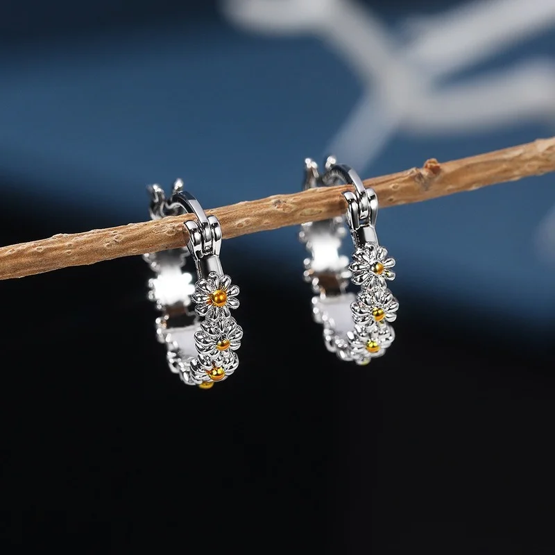 Изящные серьги-кольца с маргаритками для женщин Простые Стильные ун...