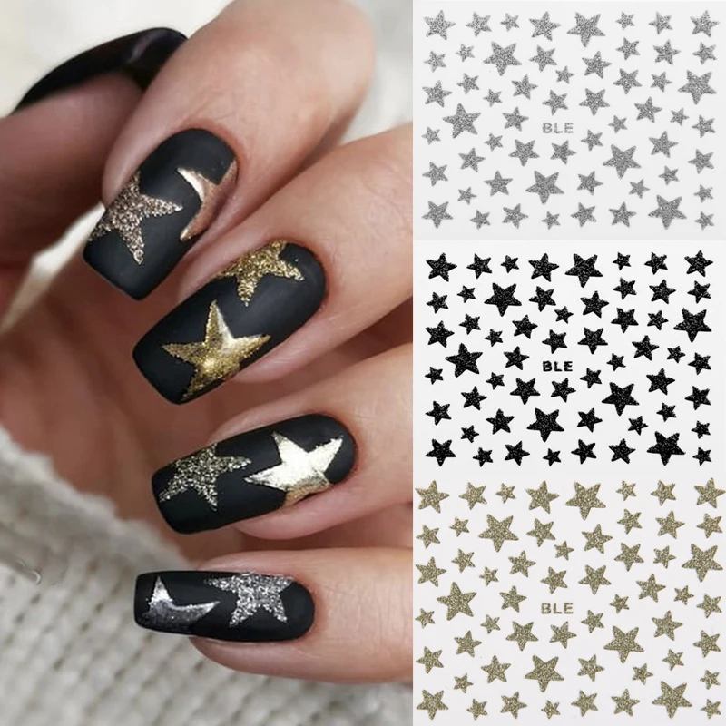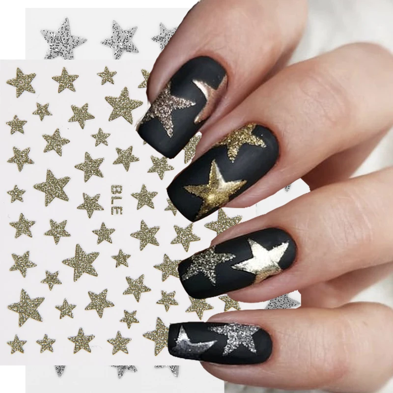 Наклейки для ногтей, с объемными звездами, 1 шт.
