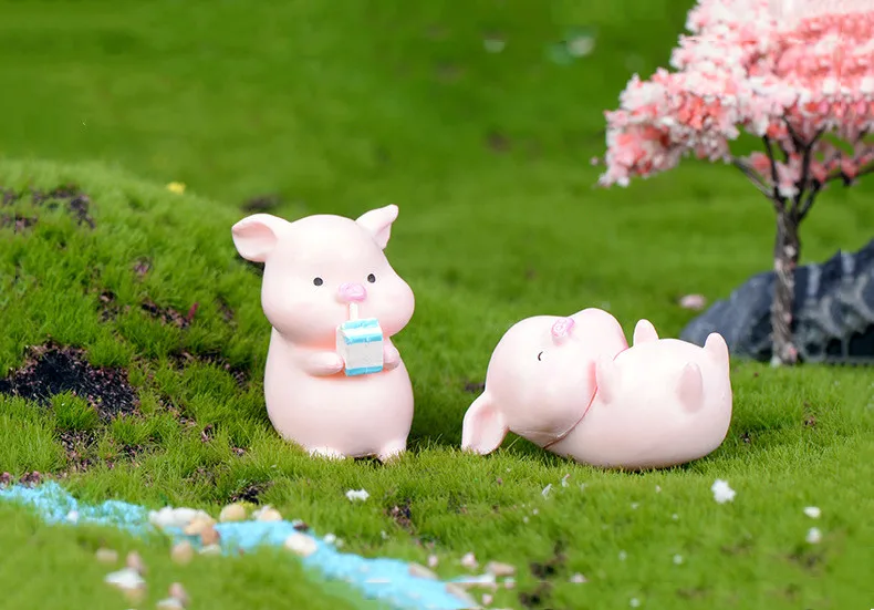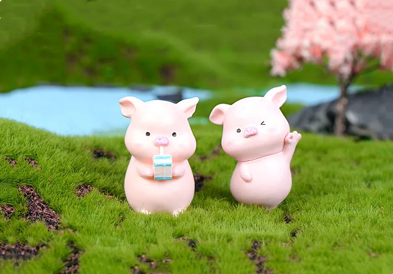 Милый желтый дождевик в виде свиней, задняя Сумка, статуэтки, миниатюрное украшение, сказочное украшение для стола, статуэтки ручной работы