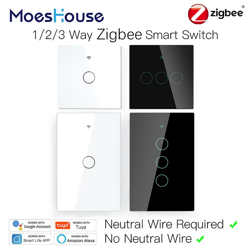 Настенный светильник Zigbee Moeshouse, сенсорный переключатель, двухсторонний переключатель, умный переключатель для ЕССША, Zigbee, без нейтрального Alexa, Google Home