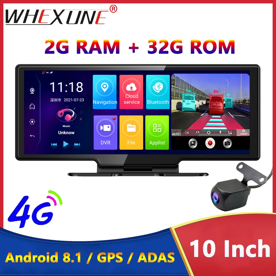 Видеорегистратор 4G, Автомобильная камера заднего вида с IPS экраном 10 дюймов, GPS Навигатором, на базе Android