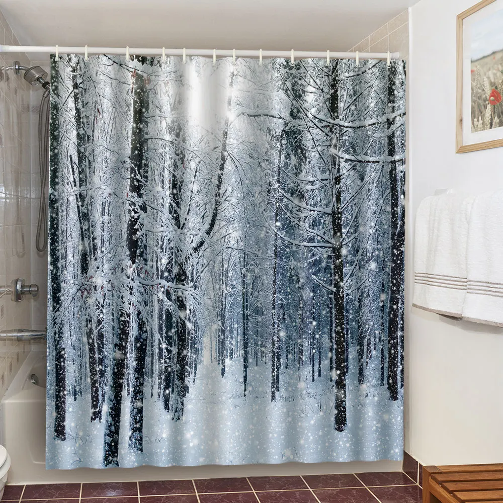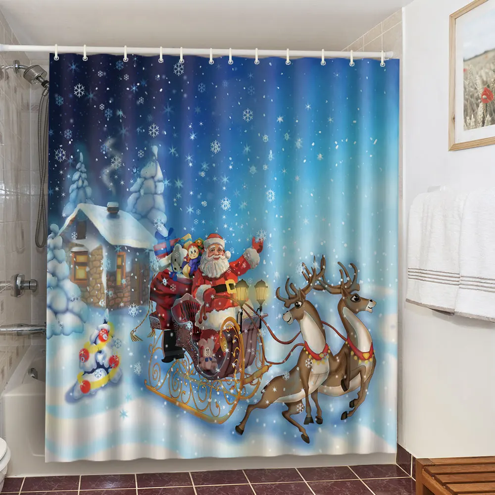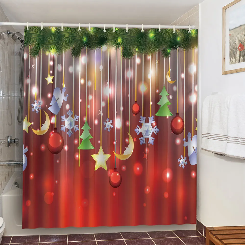 Рождественское украшение, Полиэстеровая занавеска для душа, с принтом, для домашнего декора, с изображением снега, водонепроницаемая, моющаяся занавеска для ванны