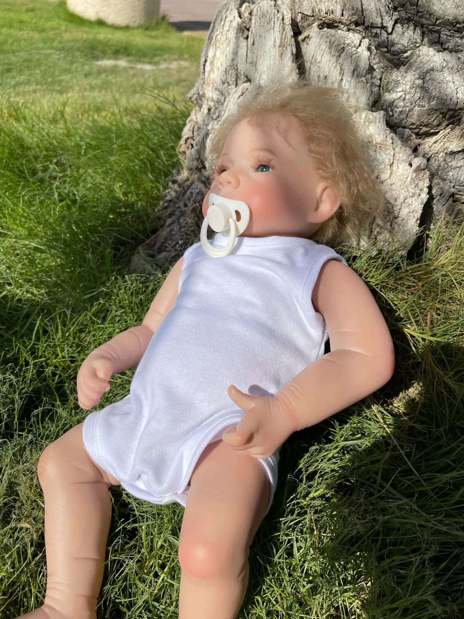 llego una muñeca de goma no de silicona aunque no esta tan mal, no es lo que se esperaba, el pelo se le cae al tocarlo