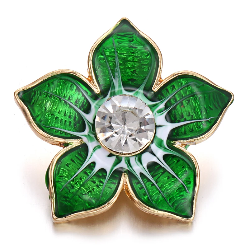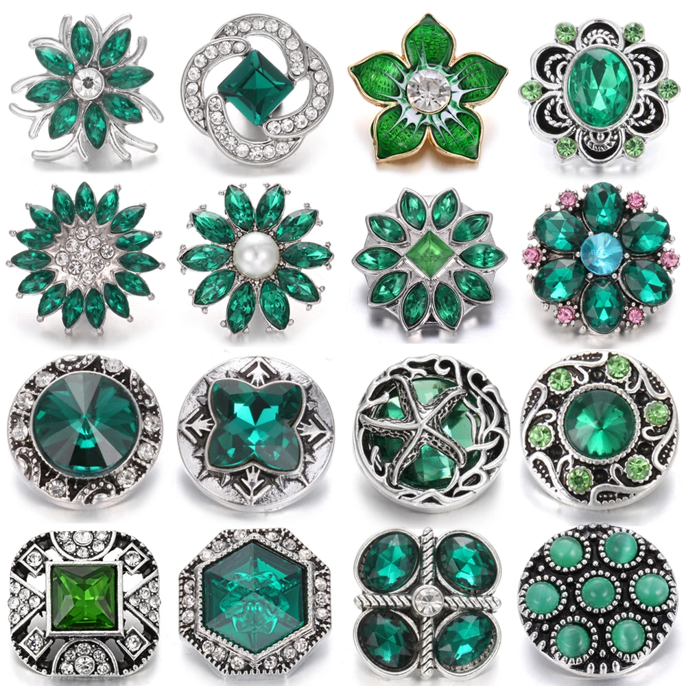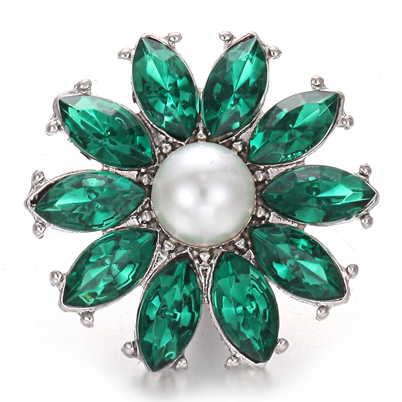 5 шт.лот новые ювелирные изделия с защелками зелёные Стразы Кристалл цветок металлическая защелка кнопки Подходит для 18 мм 20 мм Браслет Подвески Ювелирные изделия