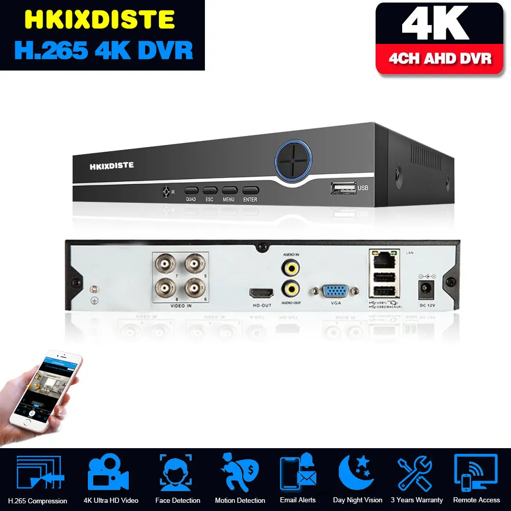 HKIXDISTE 4CH 8CH 4K 8MP 5MP Гибридный AHD DVR Обнаружение движения человека CCTV видеонаблюдение рекордер 16-канальный 1080P NVR для системы камер безопасности