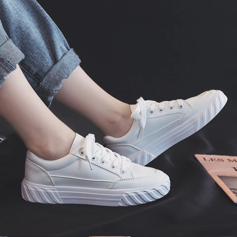 Кроссовки женские кожаные, однотонные Белые кеды для скейтборда, спортивная обувь для школьников и мальчиков, бежевые, большие размеры 43 44