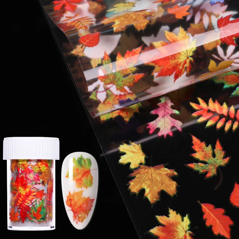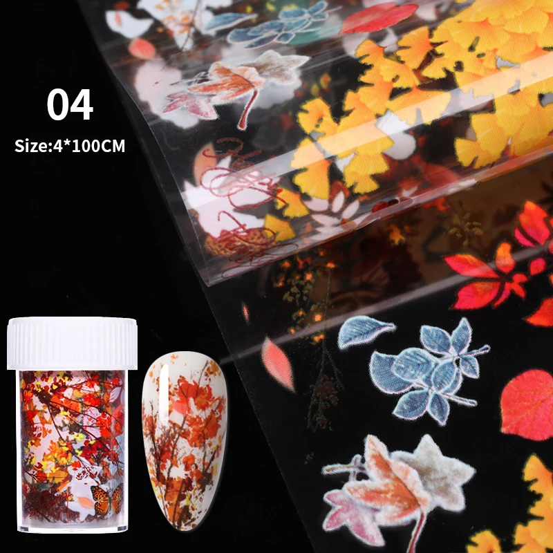 Фольга для ногтей с изображением бабочки, золотых осенних листьев, цветка, кленового листа, переводная наклейка для ногтей, Аксессуары для инструментов художественные украшения сделай сам, 1 коробка