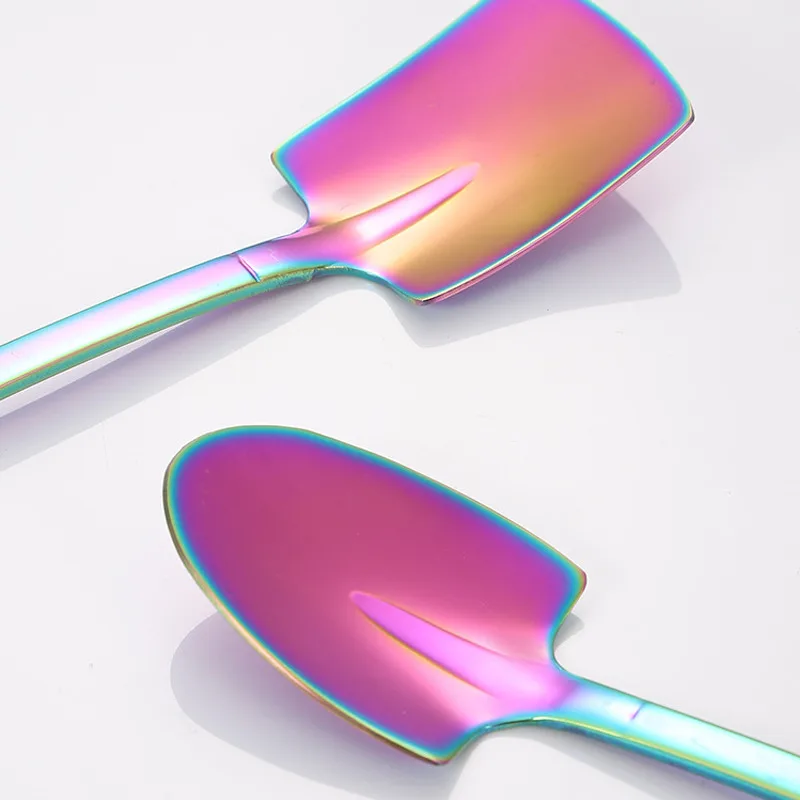 Особенности:<Материал: изготовлен из высококачественной антикоррозийной нержавеющей стали, нетоксичный, устойчивый к ржавчине и коррозии, безопасный для посудомоечной машины<Хорошее качество: гладкие и круглые края, чтобы вы чувствовали себя комфортно.<Креативный дизайн: креативная ложка в форме лопаты предназначена для мороженого и арбуза.<Не царапается: гладкие края не вызывают травм губ и десен.<Идеальный подарок: идеально подходит для того, чтобы вы добавили в свой набор столовых приборов, или в качестве подарка, и детям, друзьям и семье понравится<Многоразовое Использование: отлично подходит для мороженого, йогурта, десертов, тортов, фруктов, желе, пудинга и любого другого вкусного десерта. Он также работает для перемешивания таких вещей, как кофе, чай, шоколадное молоко и многое другое.<Многоцелевой: идеально подходит для использования в качестве чайной ложки, десертной ложки, ложки для мороженого, фруктовой ложки, десертной ложки, ложка для торта, кофейной ложки, перемешивающей ложки и многого другого.<Широкое применение: Идеально подходит для кухни, дома, бара, ресторана, вечерние и многое другое.<Хороший декор: современный дизайн, легко сочетается с существующими столовыми приборами, это стильно и практично.<Эргономичная ручка: термостойкая, эргономичная ручка из нержавеющей стали для безопасного и удобного захвата