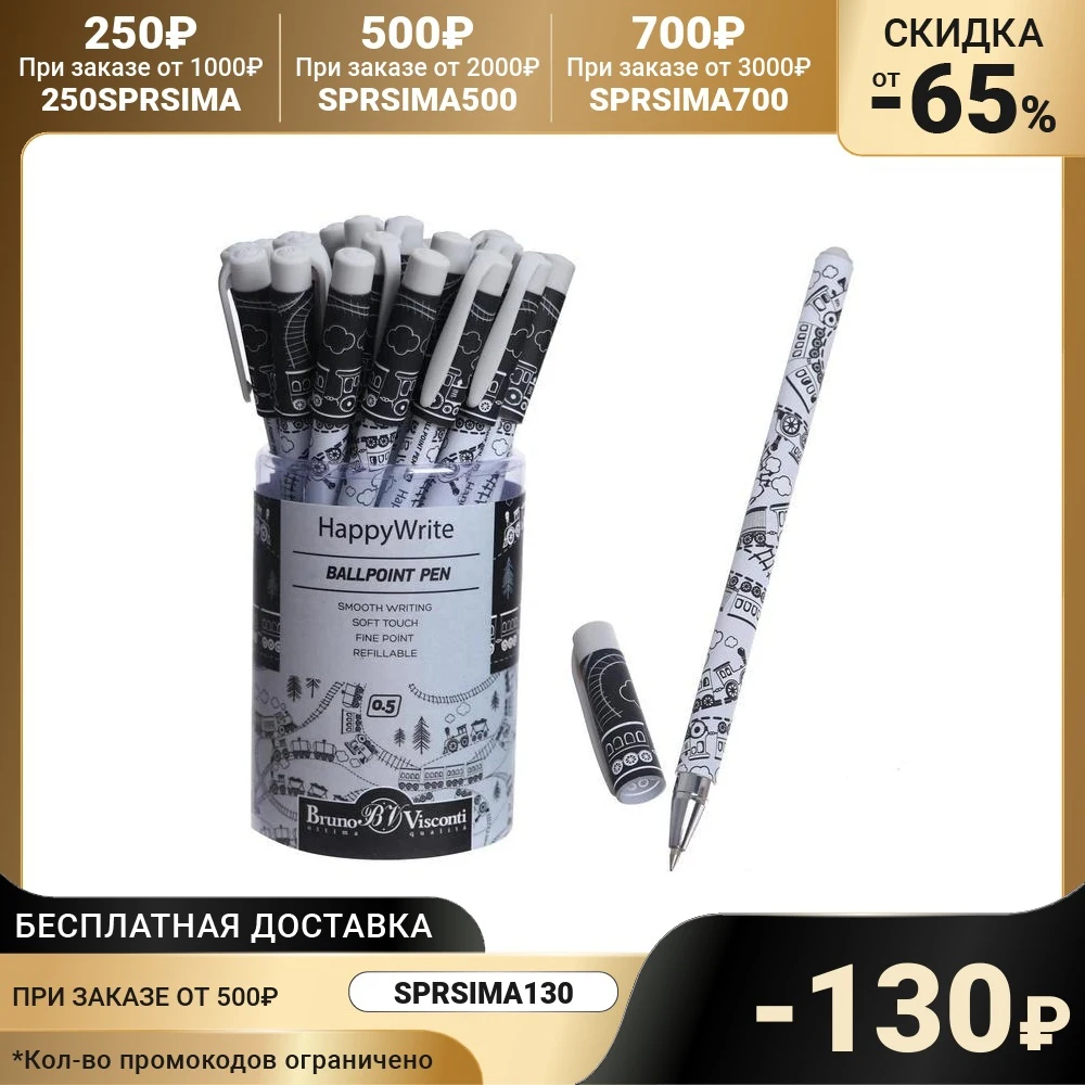 Ручка шариковая HappyWrite "Игрушки.Паровозики", 0,5 мм, синие чернила