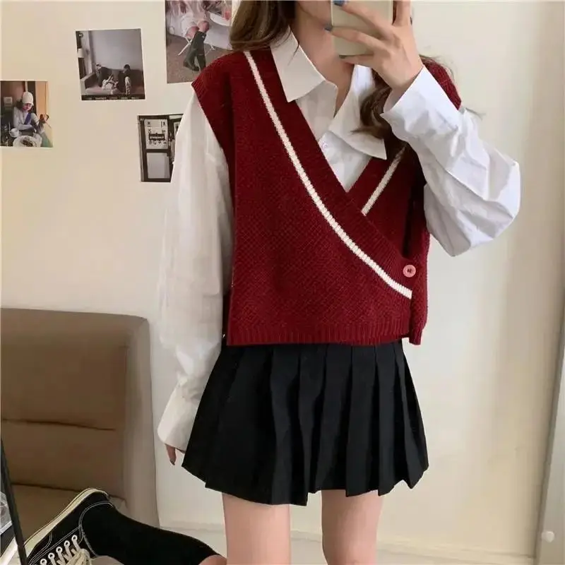Костюм в японском колледжском стиле для девочек, Молодежный вязаный...