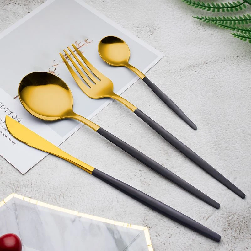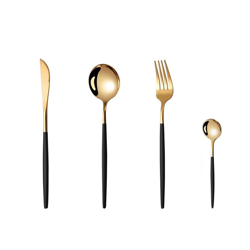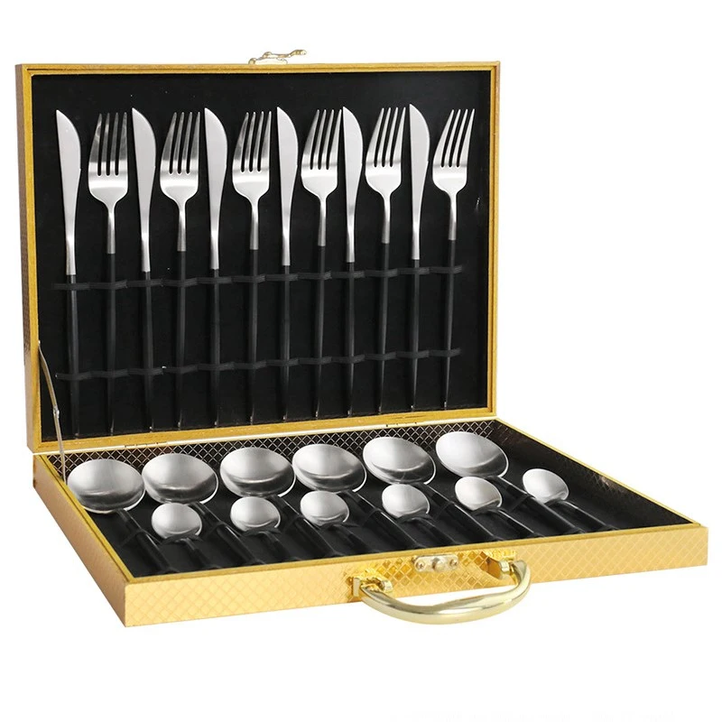 Столовые приборы в коробке, 24 шт., вилка из нержавеющей стали, нож, вилка, португальский нож, вилка, ложка, золотые кухонные столовые приборы