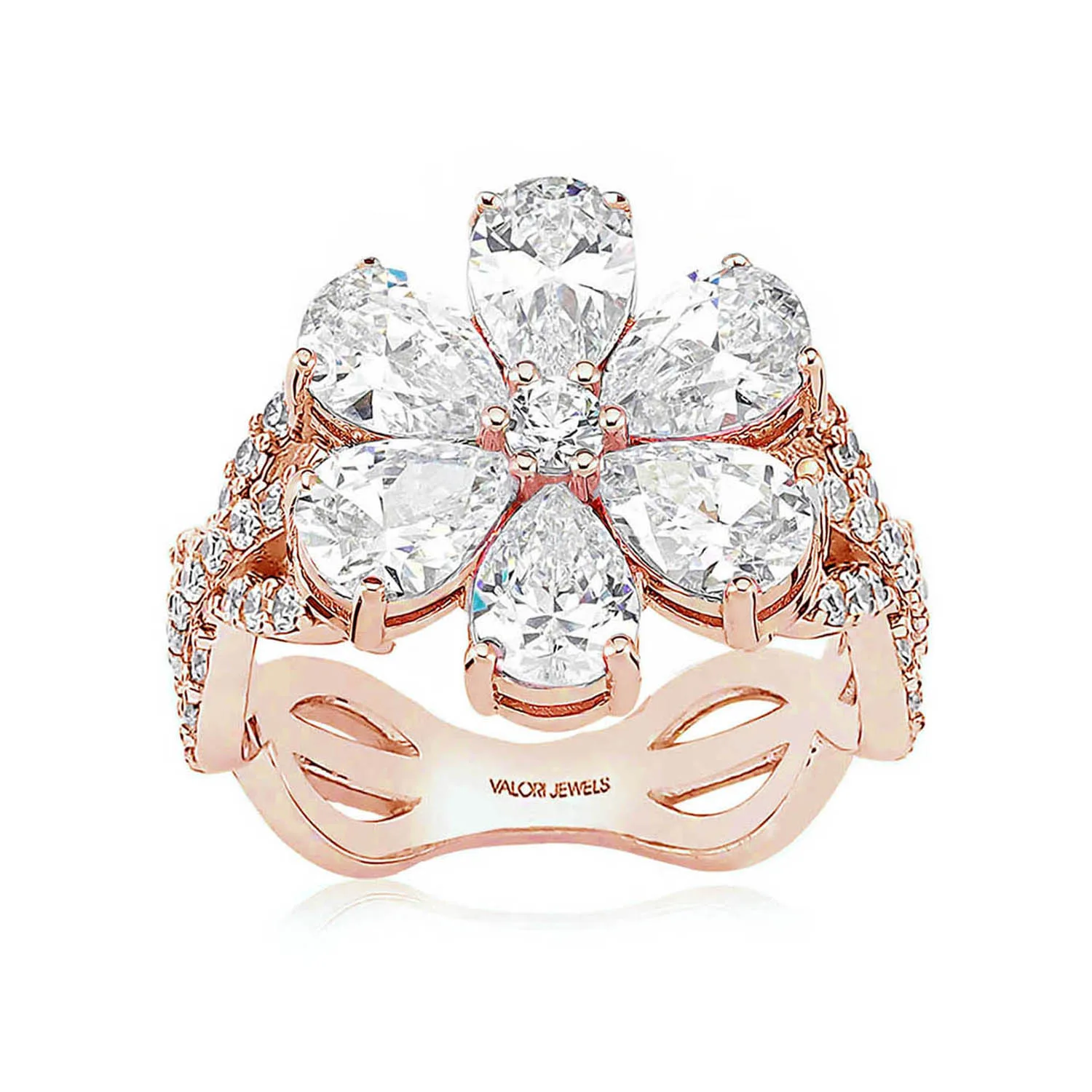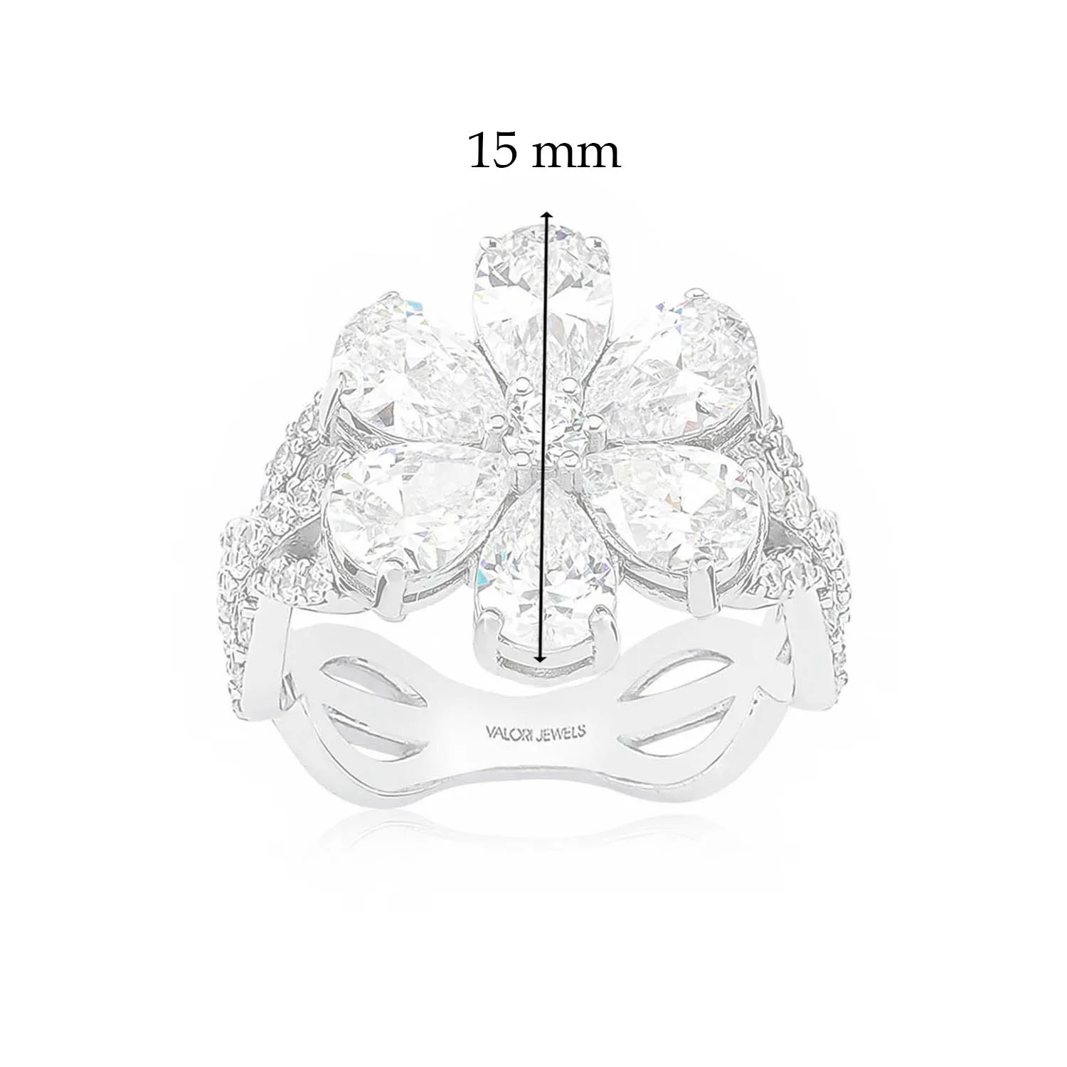 Кольцо с цветком магнолии, цирконием 2 карата, с белой грушей, с родиевым покрытием, серебро 925 пробы, ювелирные украшения из драгоценных камней