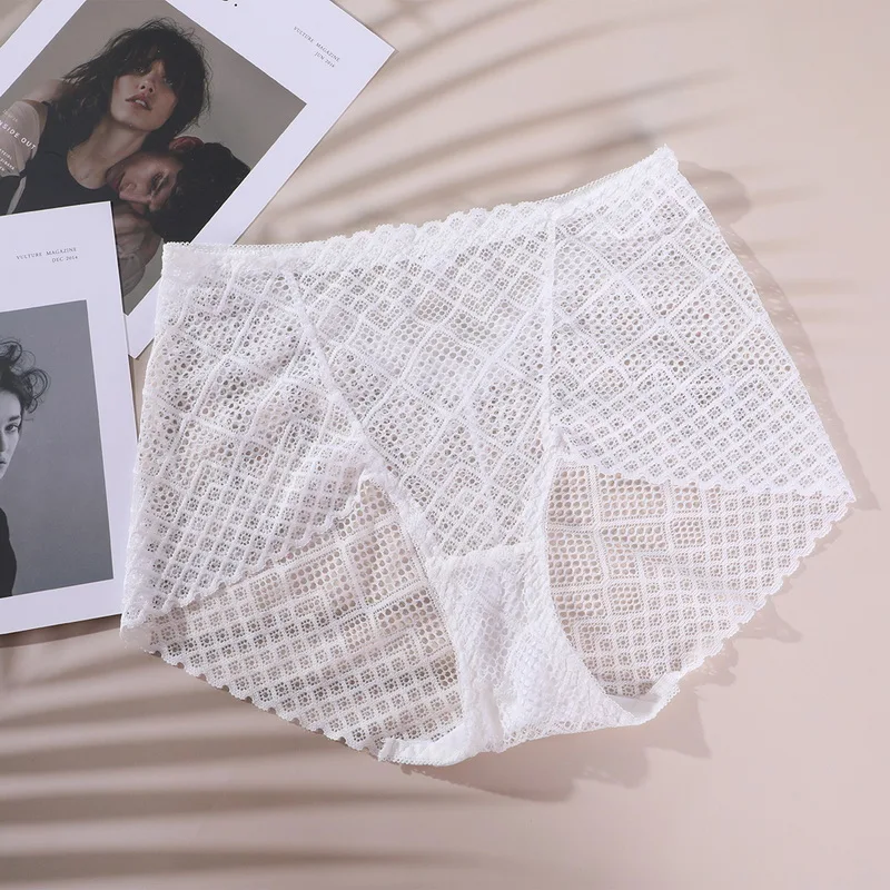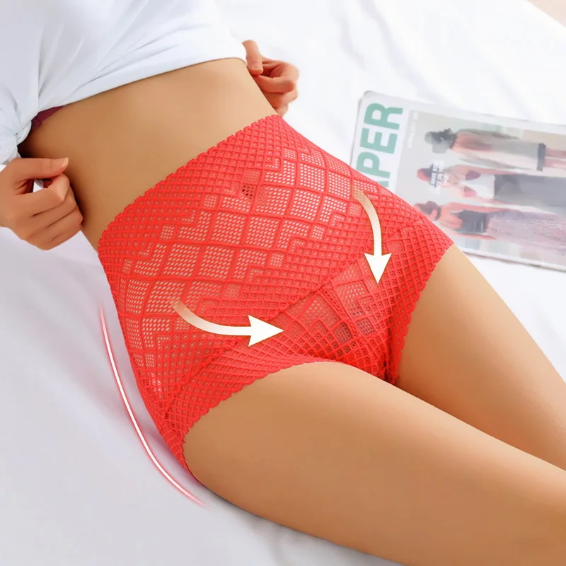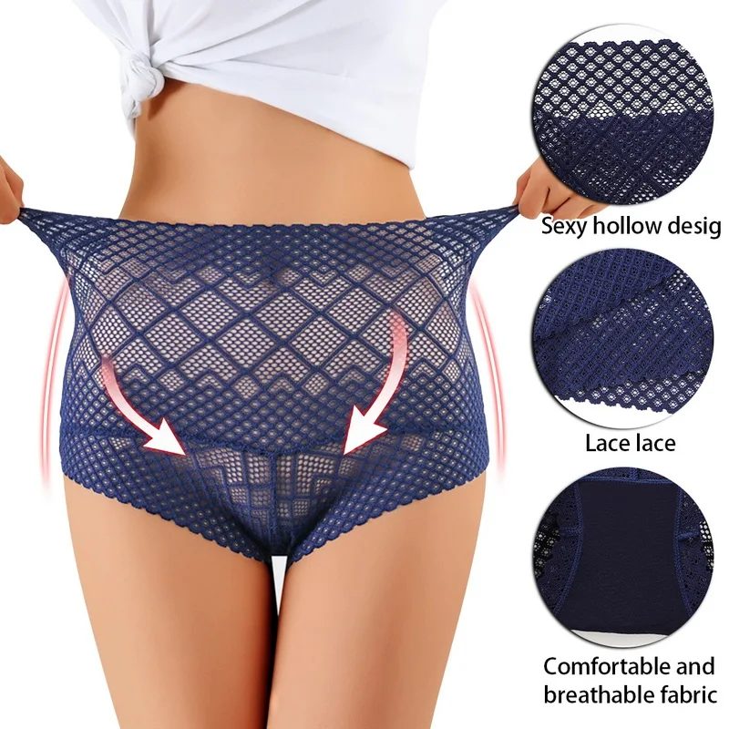 Трусы женские кружевные с высокой посадкой, ромбовидная сеть, разме...