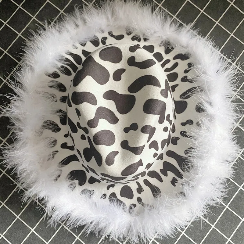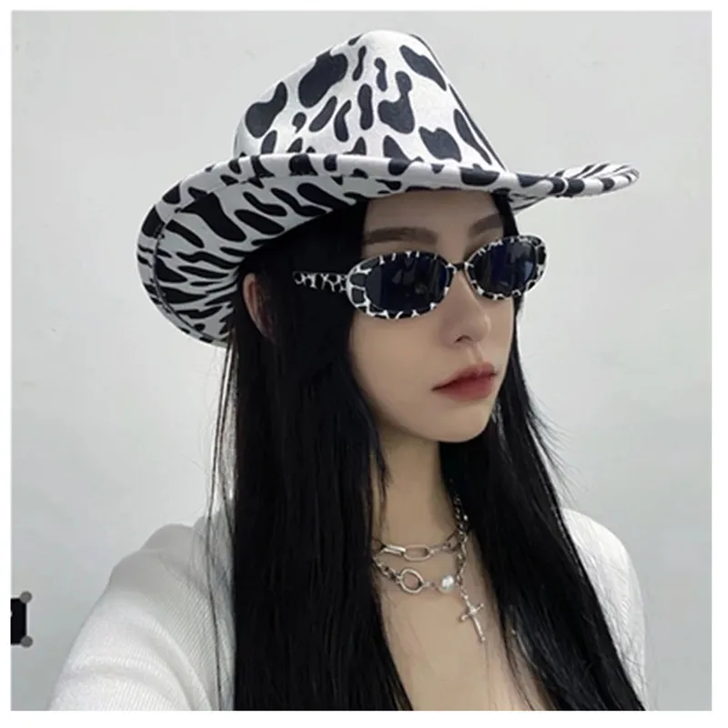 Ковбойская шерстяная шляпа с коровьим рисунком, женская модная клас...