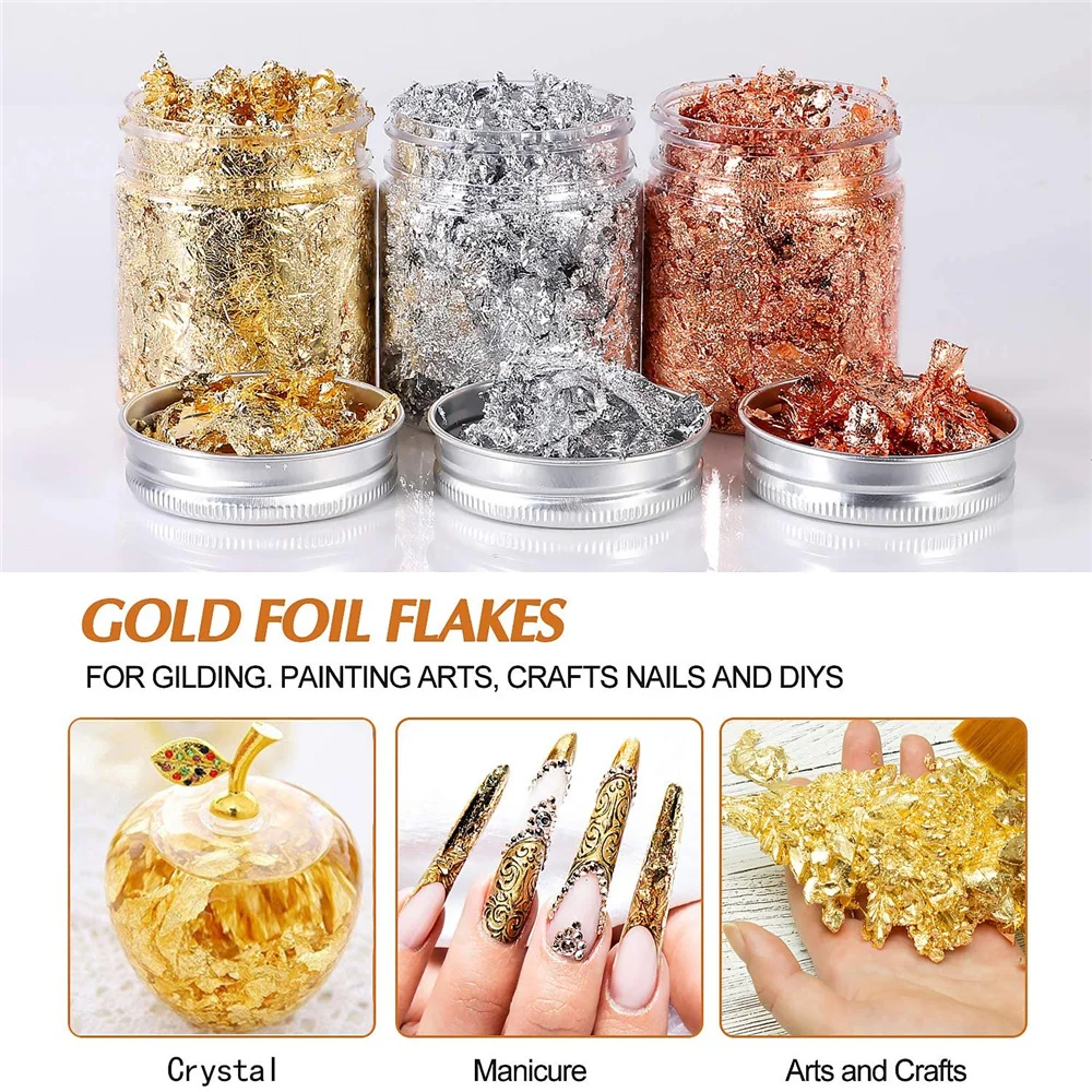 3g искусственная Бриллиантовая медная фольга, блестки, бриллианты в виде листьев, листы из фольги россыпью для золочения, декор для творчества и ногтевого дизайна
