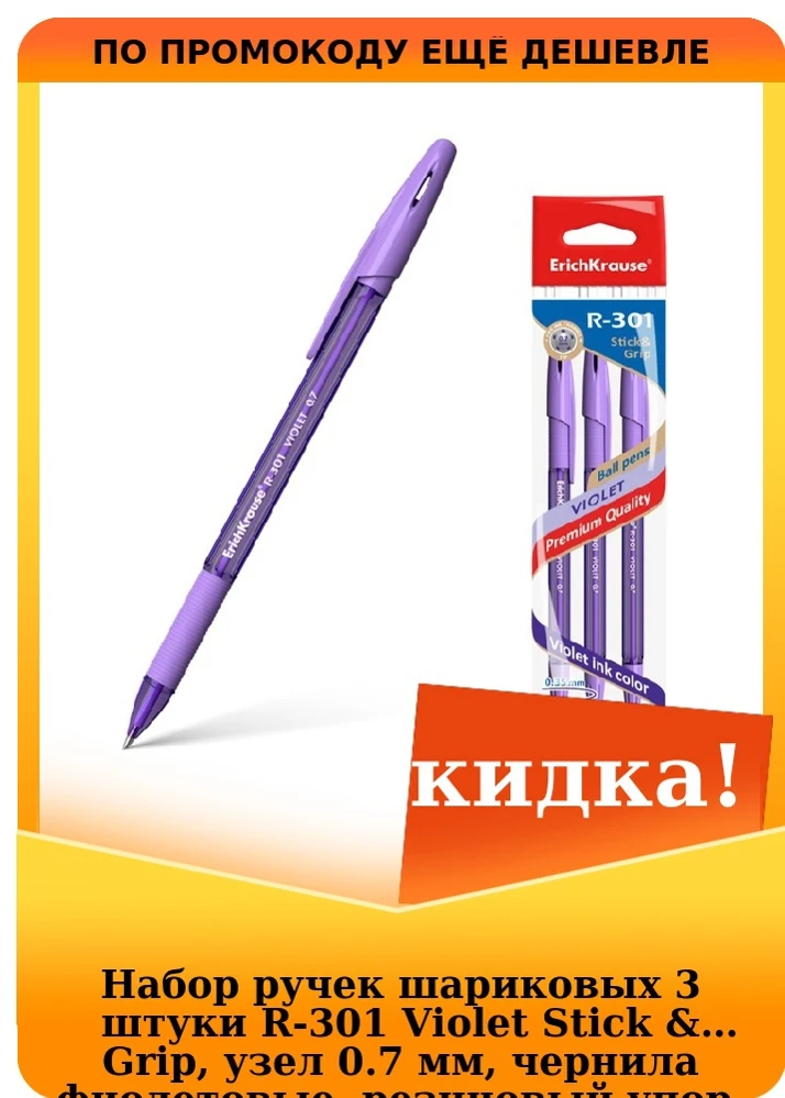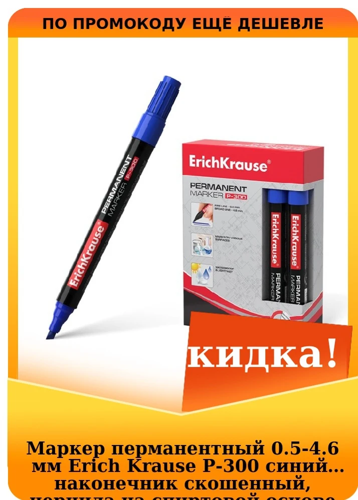 Стержень шариковый 140 мм, Erich Krause, узел 1 мм, чернила синие, подходит для ручки, R-301