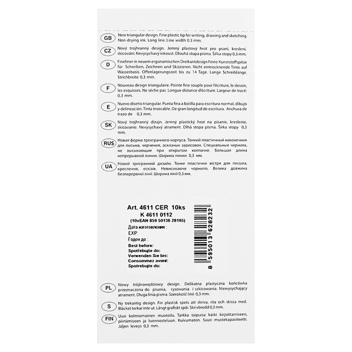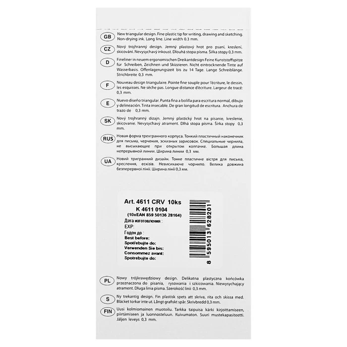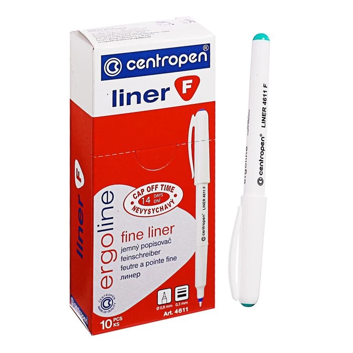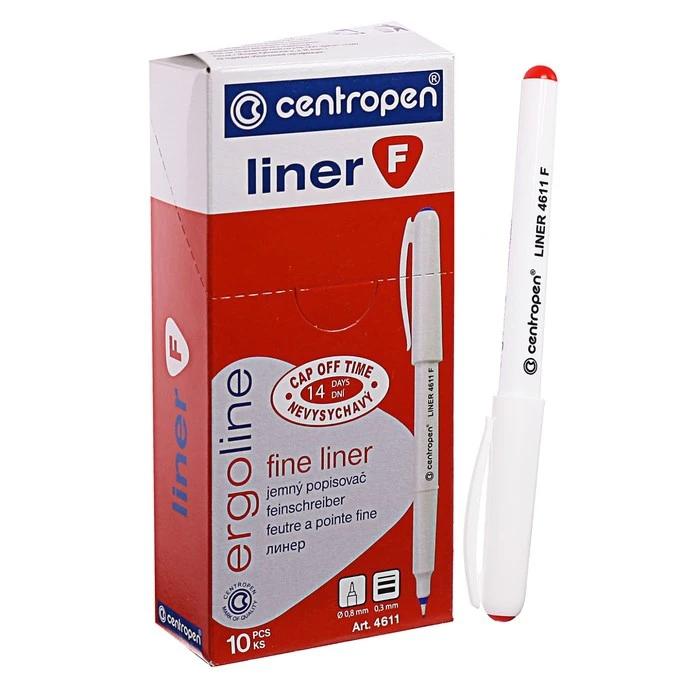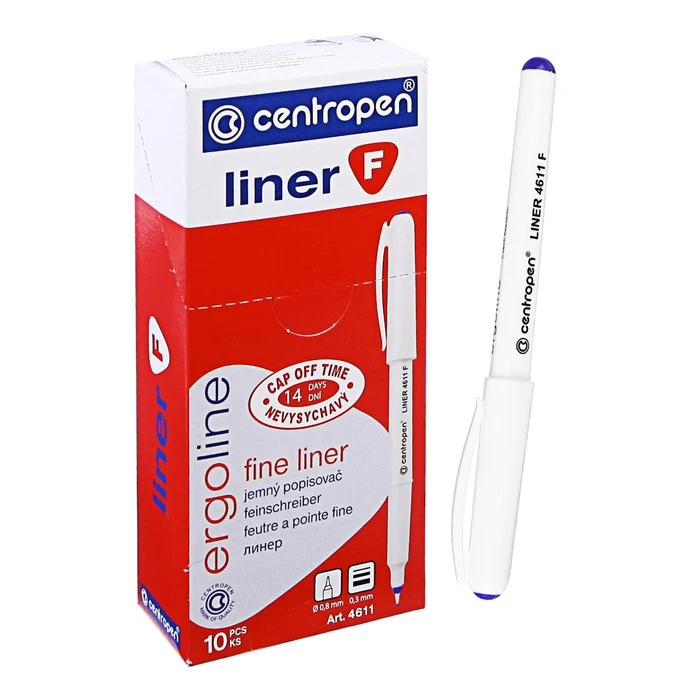 Ручка капиллярная, 0.8 мм, Centropen 4611, невысыхаемая, длина письма 1500