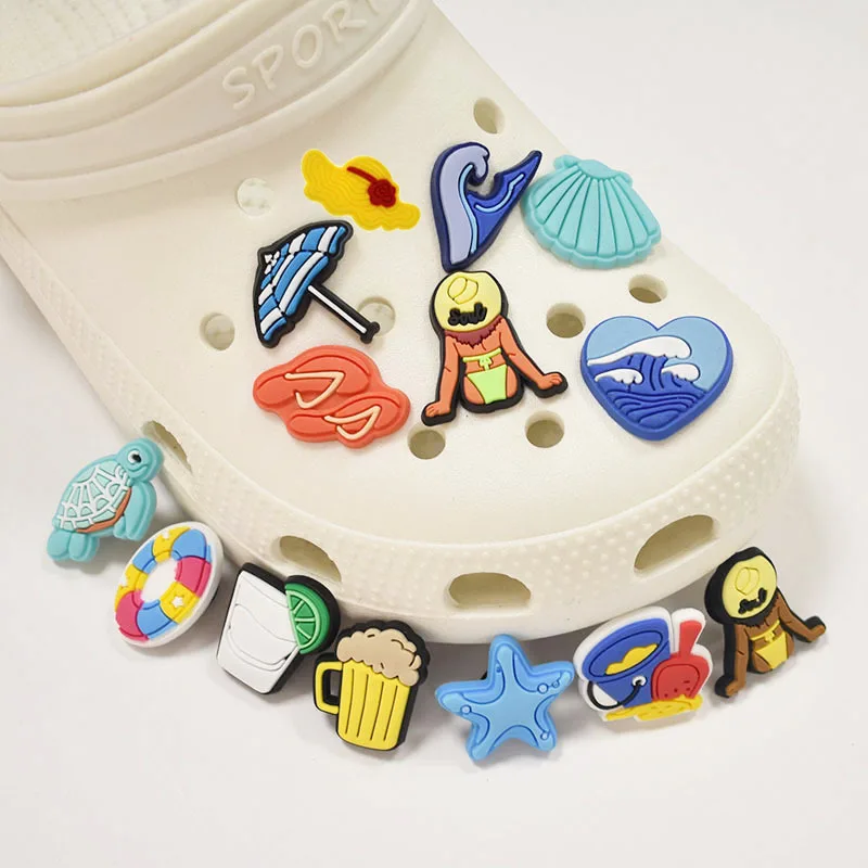Сезон 2021-2022, Пляжное украшение из мультфильма, съемная Гибкая клейкая Пряжка для обуви, украшение для обуви с цветочной вышивкой