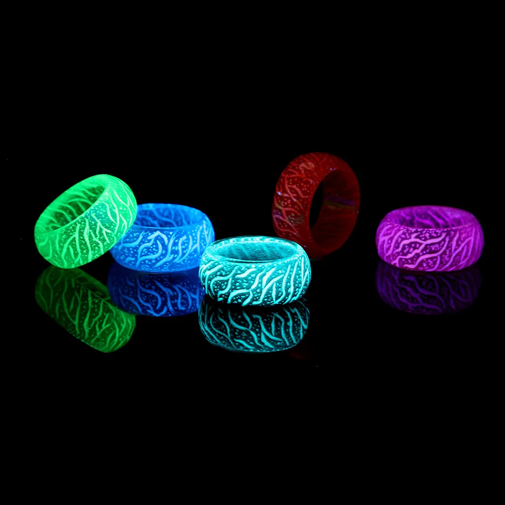 Модное красочное светящееся кольцо из смолы для женщин и мужчин, флуоресцентные светящиеся кольца, ювелирные изделия, светящееся в темноте кольцо на палец, повязка на Хэллоуин