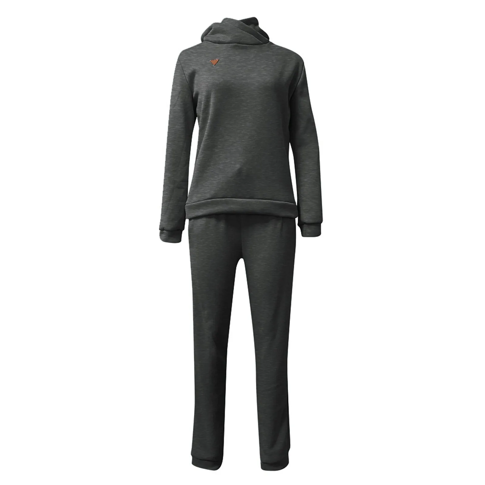Женский Повседневный однотонный спортивный топ с капюшоном и длинными рукавами, комплект с длинными штанами