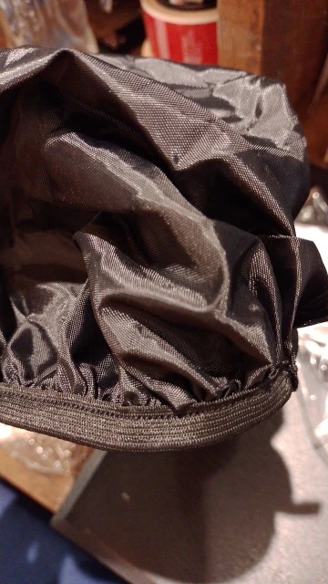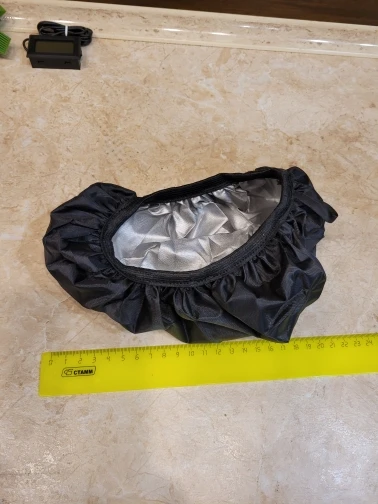 Чехол на самом деле круглой формы, но даже моём спортивном узком и длинном сидении нормально сидит. Есть петелька на крае, чтобы повесить сушить на крючок :) Под дождём не испытывал, но судя по покрытию внутри всё должно быть хорошо.