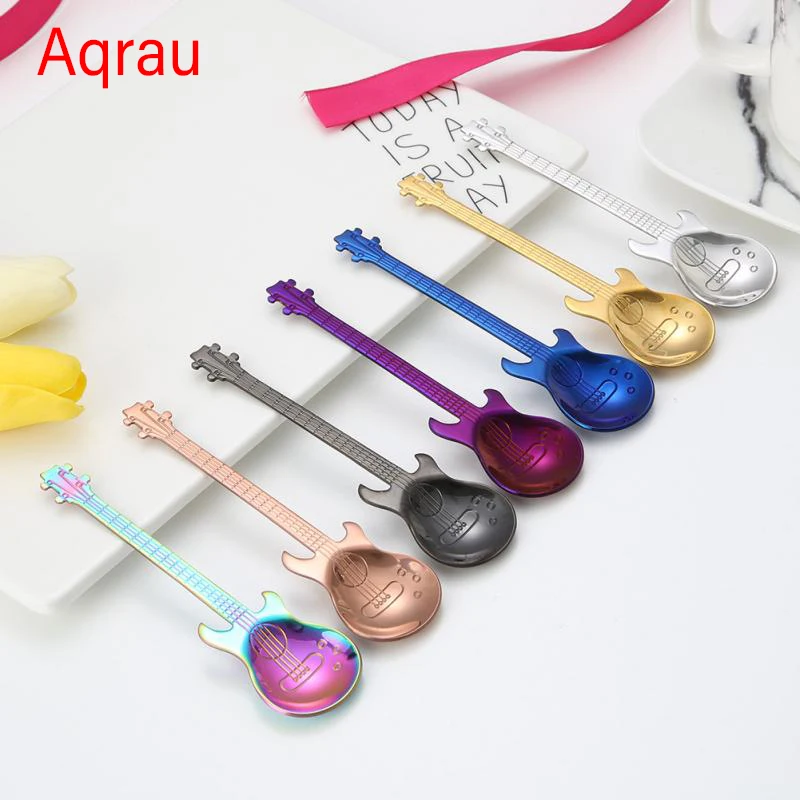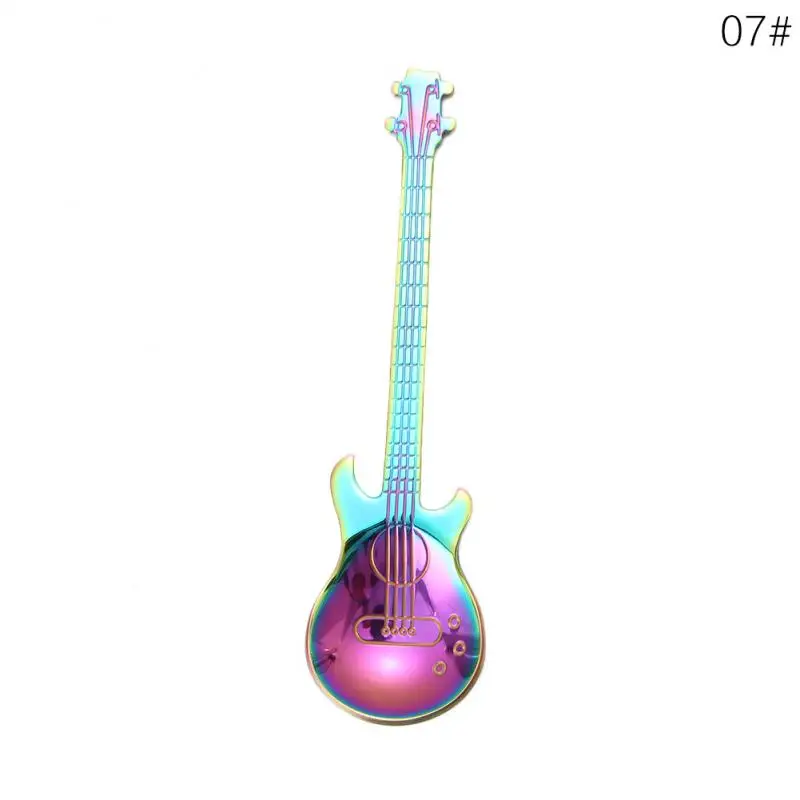 Ложка Детская в форме гитары из нержавеющей стали, 7 цветов, 1 шт., ложка для чая и кофе