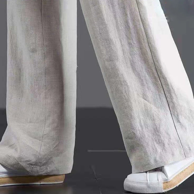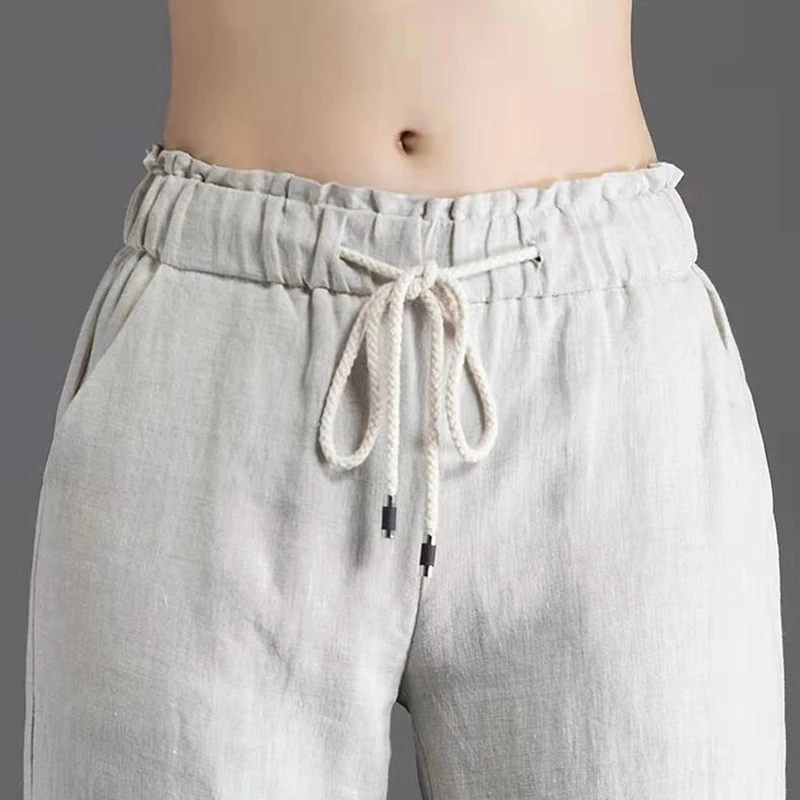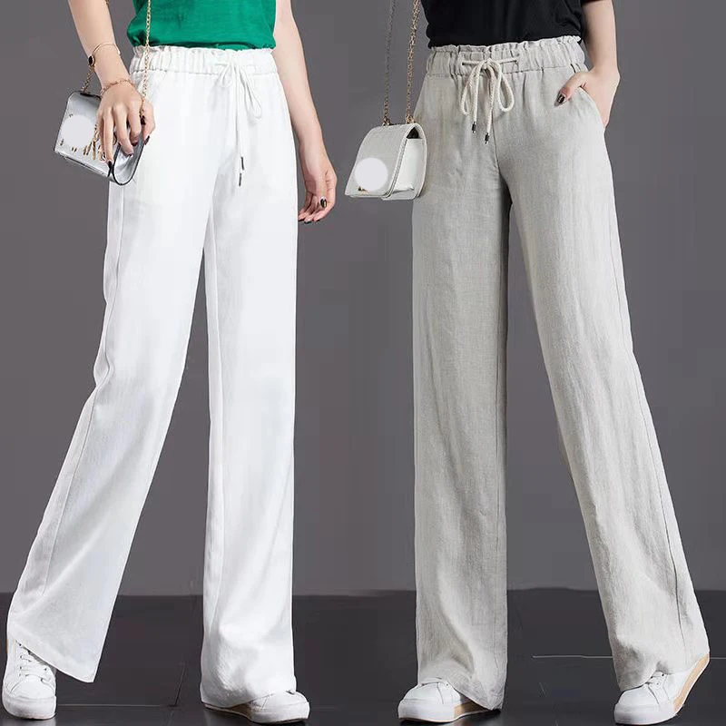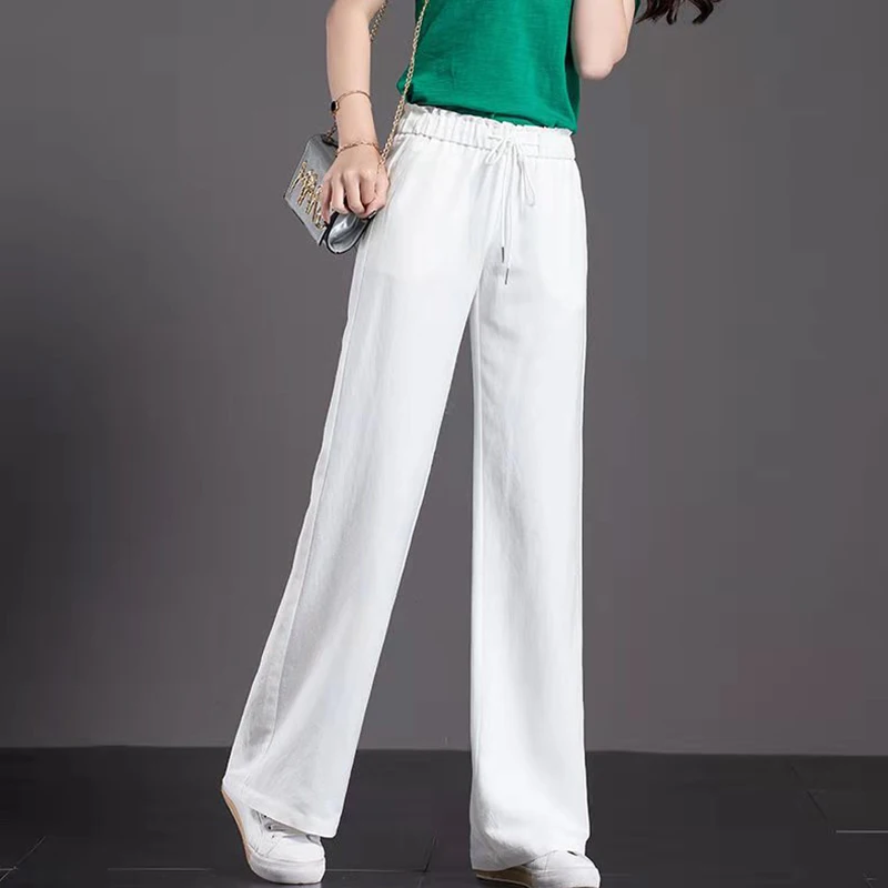 Женские винтажные прямые брюки Lncyever, однотонные повседневные широкие брюки с эластичным поясом для женщин, летние хлопковые свободные брюки 2021