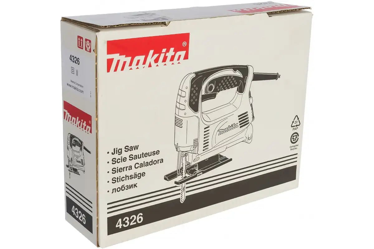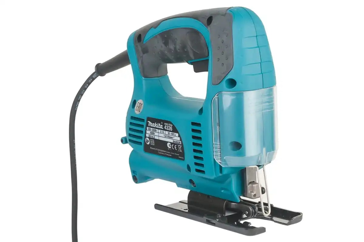 Лобзик Makita 4326 предназначен для профессионального использования. Эта модель отличается от других простых элементов управления и высокой производительности. Частота-3100 об/мин, достигается благодаря большой мощности-450 в, несмотря на отсутствие маятникового хода.