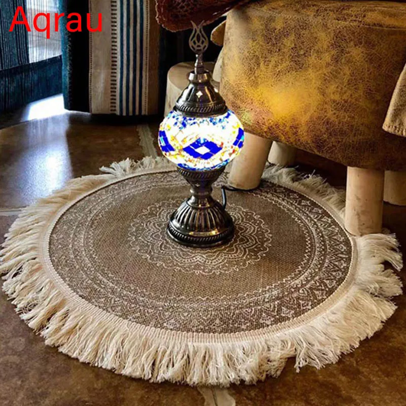 Нежный богемный хлопковый тканый коврик, льняная салфетка, Цветочный Коврик, круглая изоляционная, Нескользящие кисточки, кухонный инструмент для украшения