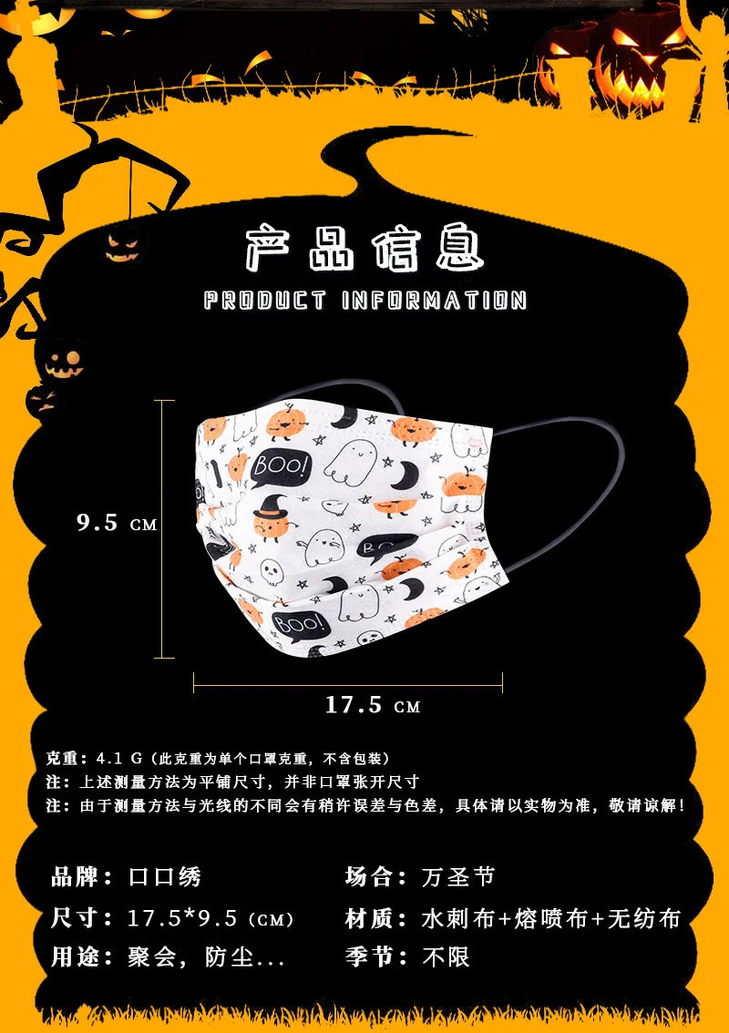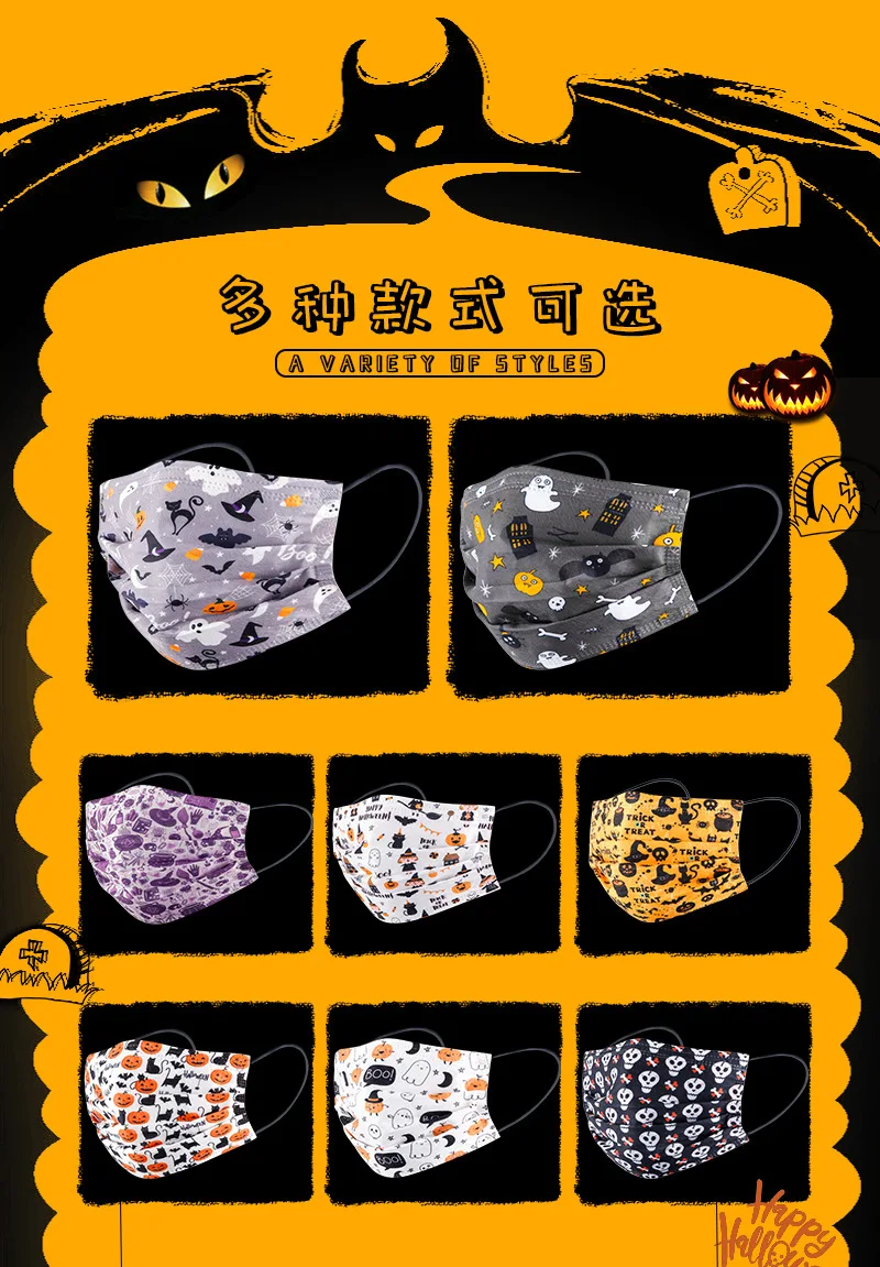 Маска для Хэллоуина Одноразовая, трехслойная, из нетканого материал...