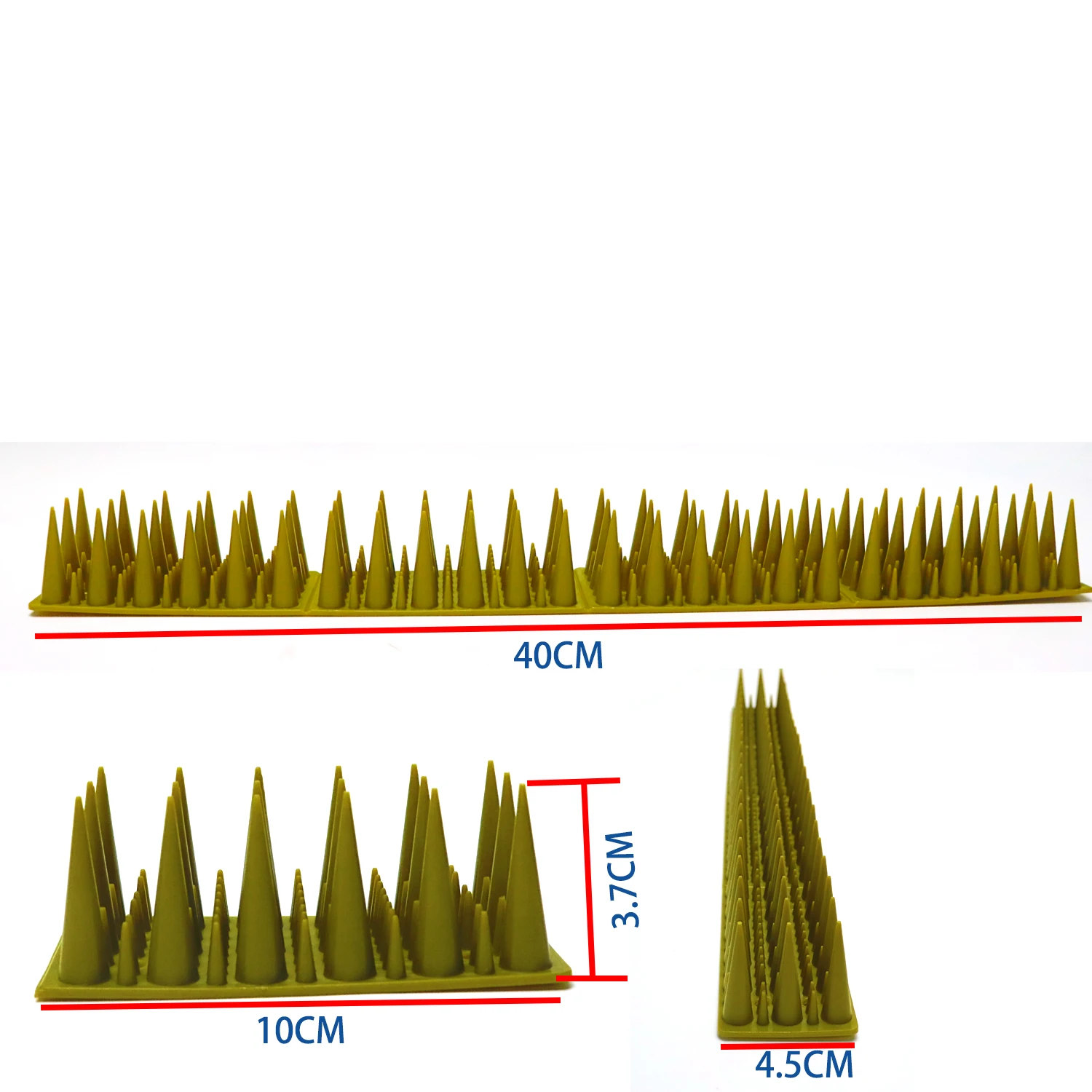 Улучшенный дизайн: высоты большой оправки является 1,4 дюйм (ов), высота маленький pin-код 0,5 дюйм (ов). Зазор между шипами и оправкой более плотный, так что маленькие птицы могут быть предотвращены от падения непосредственно в зазор и оставаться, пока они не чувствуют боль отталкивания. Улучшенная конструкция может более эффективно выполнять функцию отпугивания мелких животных.