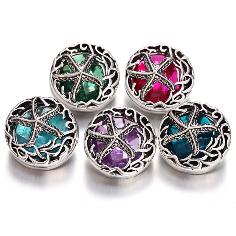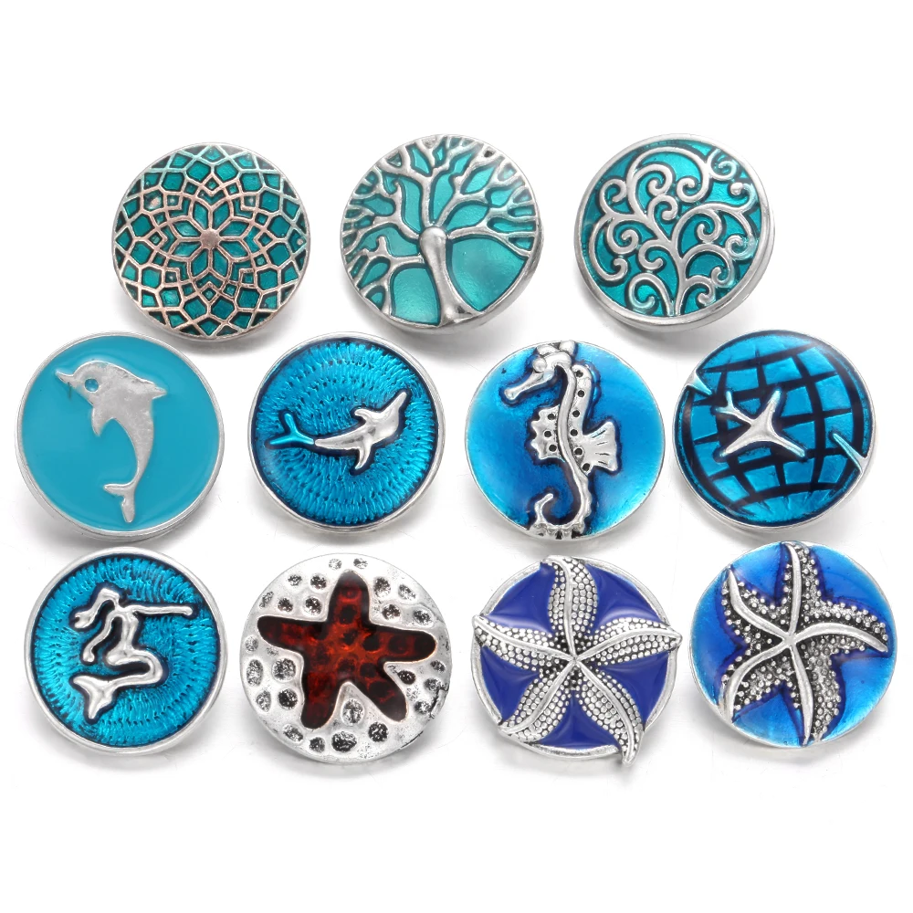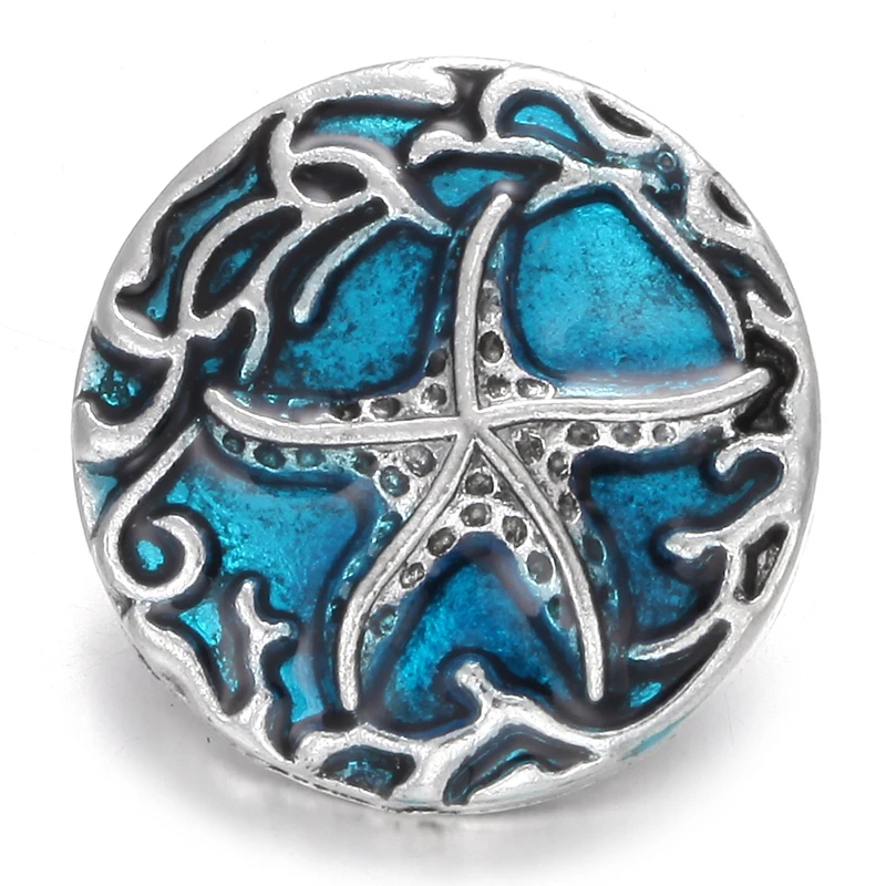 5 шт.лот кнопки ювелирные изделия 18 мм кнопки с синими стразами Морская звезда Дельфин Русалка талисманы подходят для кнопки браслета ювелирные изделия