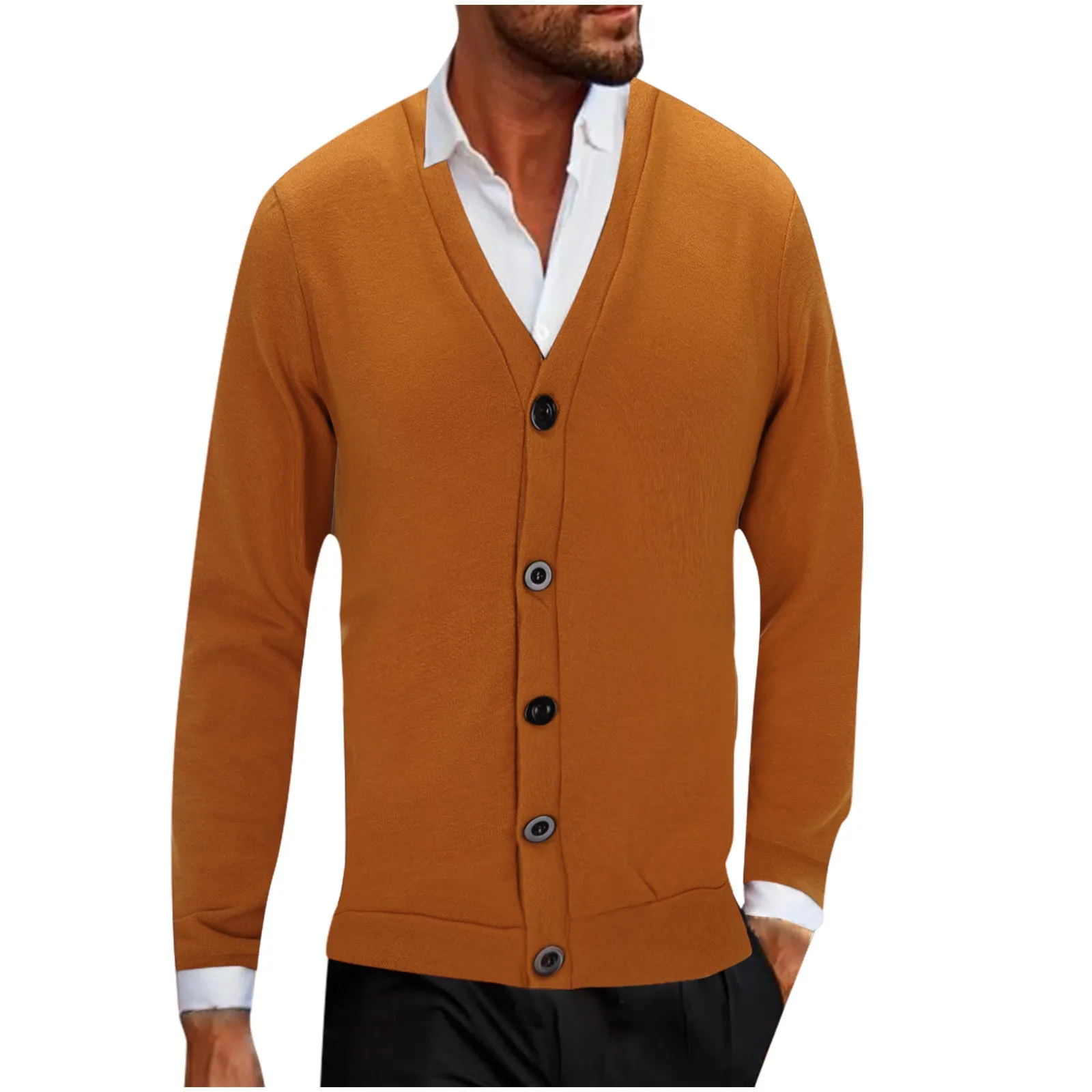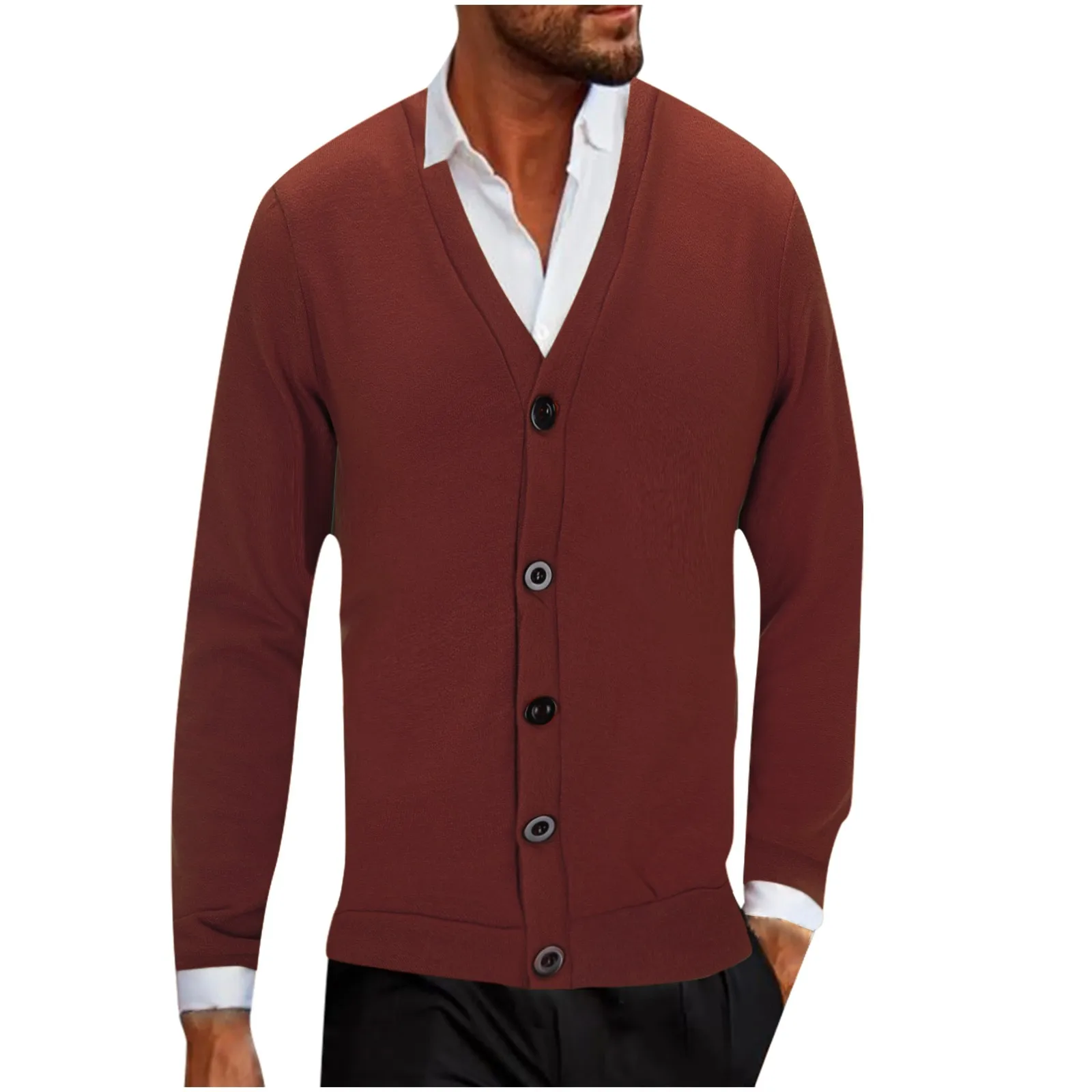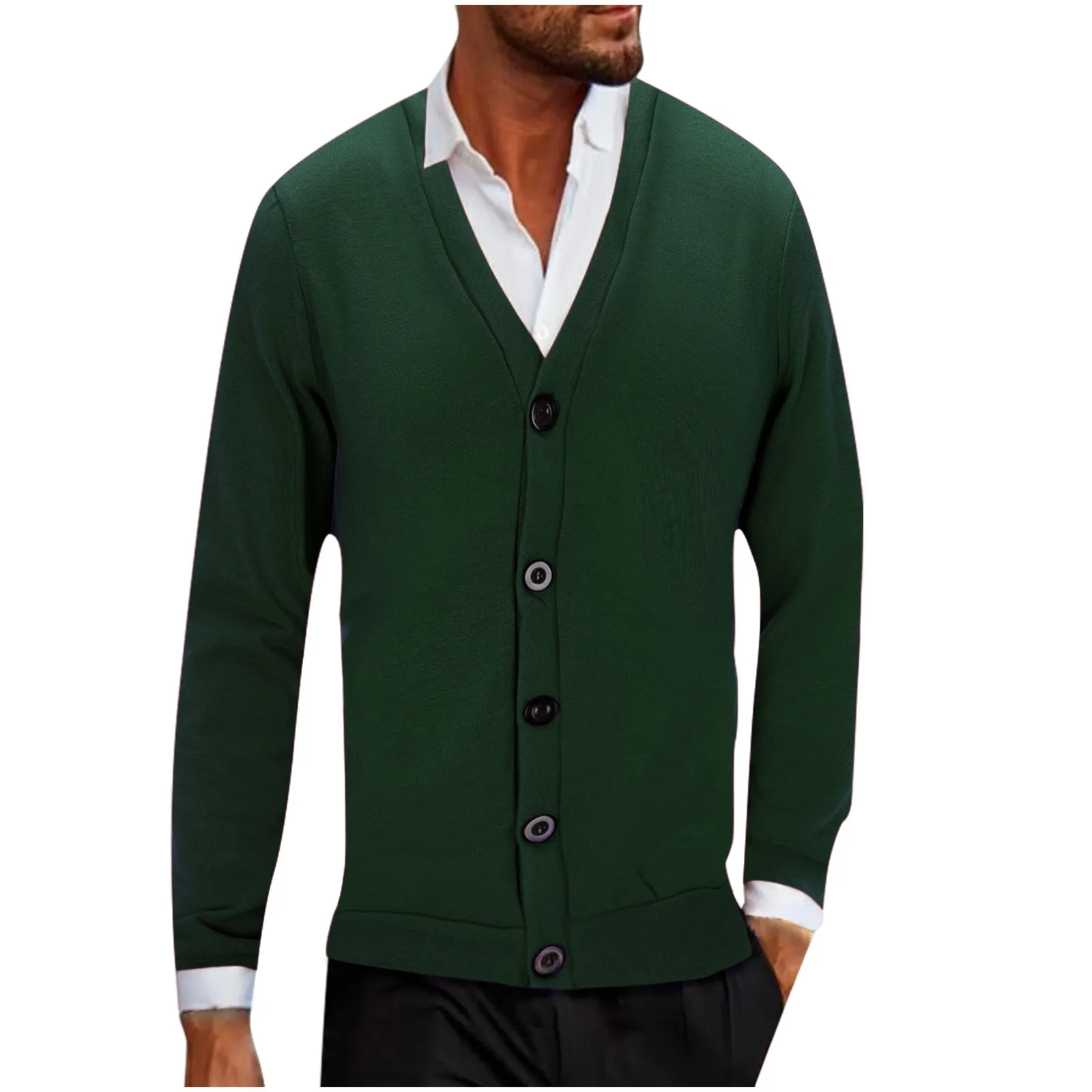 Мужской однотонный Кардиган с длинным рукавом, на пуговицах
