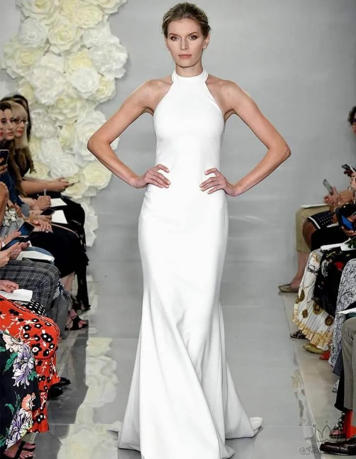 Женские Длинные Эластичные Свадебные платья с юбкой-годе, сатиновое платье со шлейфом и перекрестной спиной