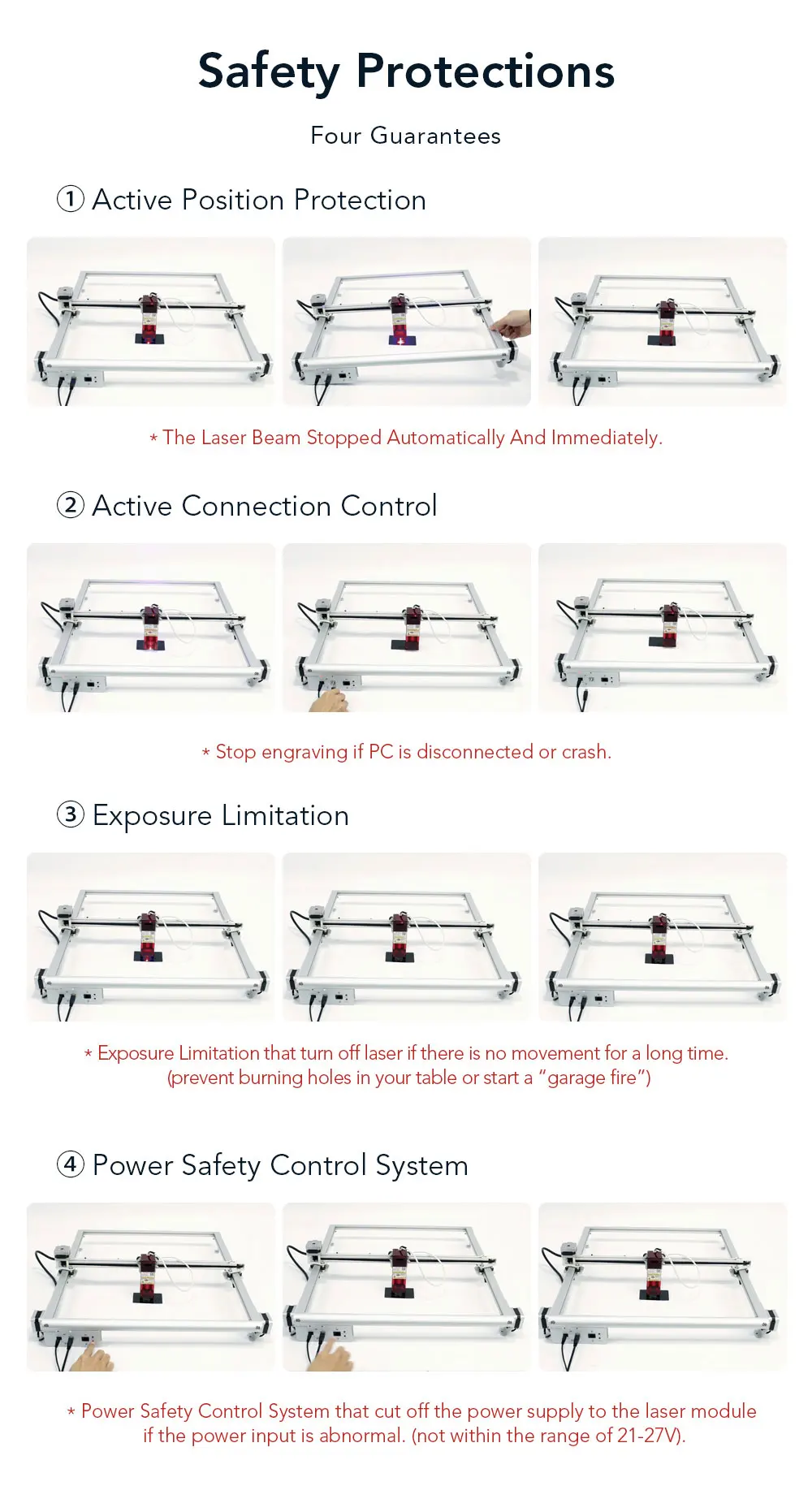 [Общая Оптимизация]Aufero имеет более длительный срок службы, потому что механическая структура была оптимизирована и разработана, чтобы иметь высокую точность гравировки в течение длительного времени. В то же время, Aufero может предоставить пользователям больше безопасности, потому что он имеет больше функций безопасности.