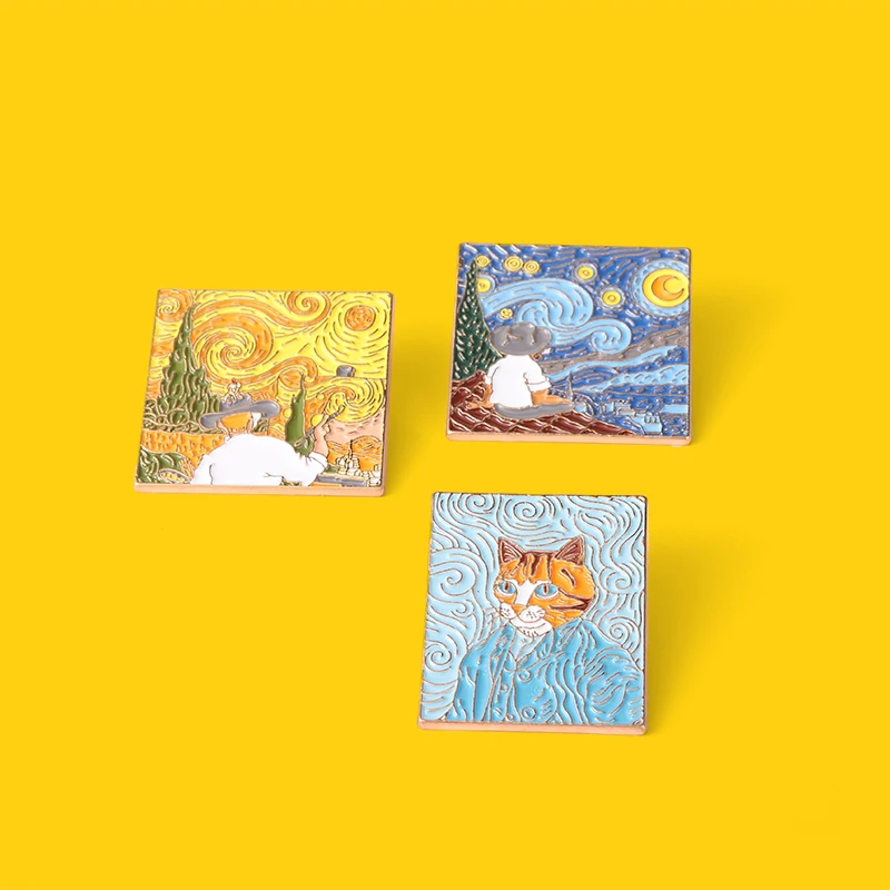 Значок с эмалью, картина маслом, Ван Гог, нагрудный знак брошь