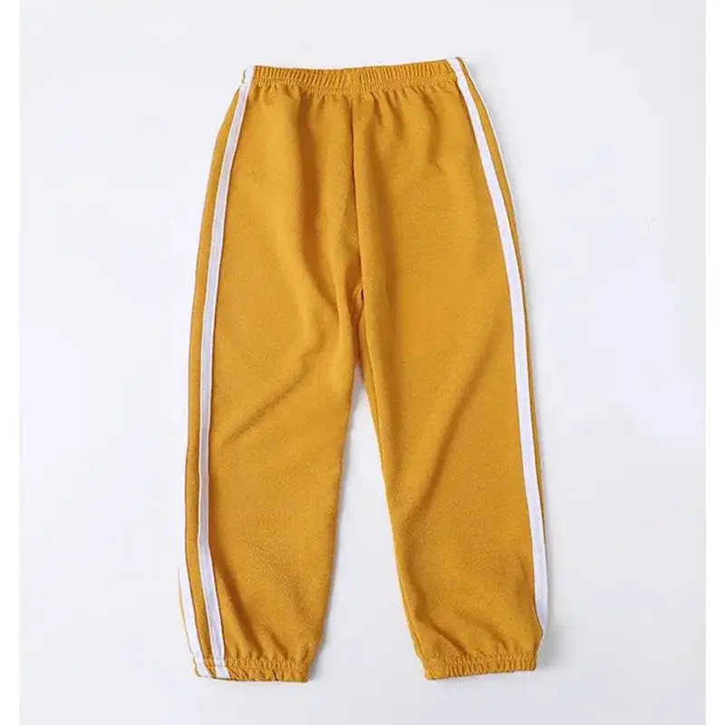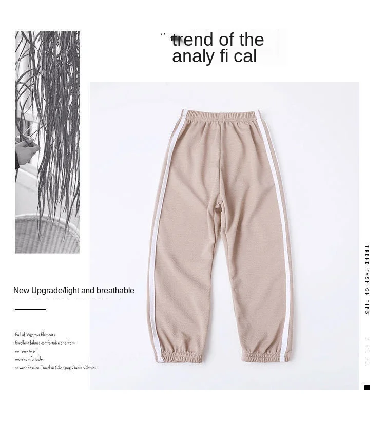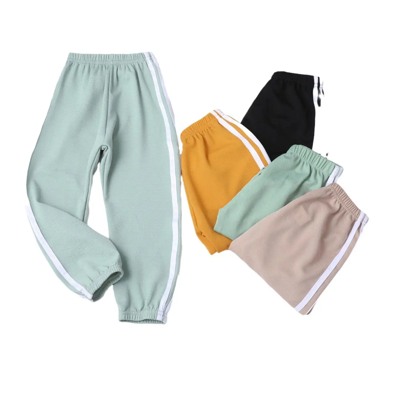 Детские однотонные льняные плиссированные брюки до щиколотки с полосками по бокам, штаны-шаровары для маленьких мальчиков и девочек с эластичным поясом