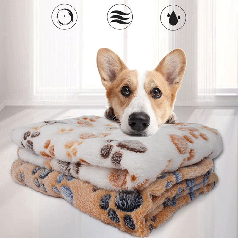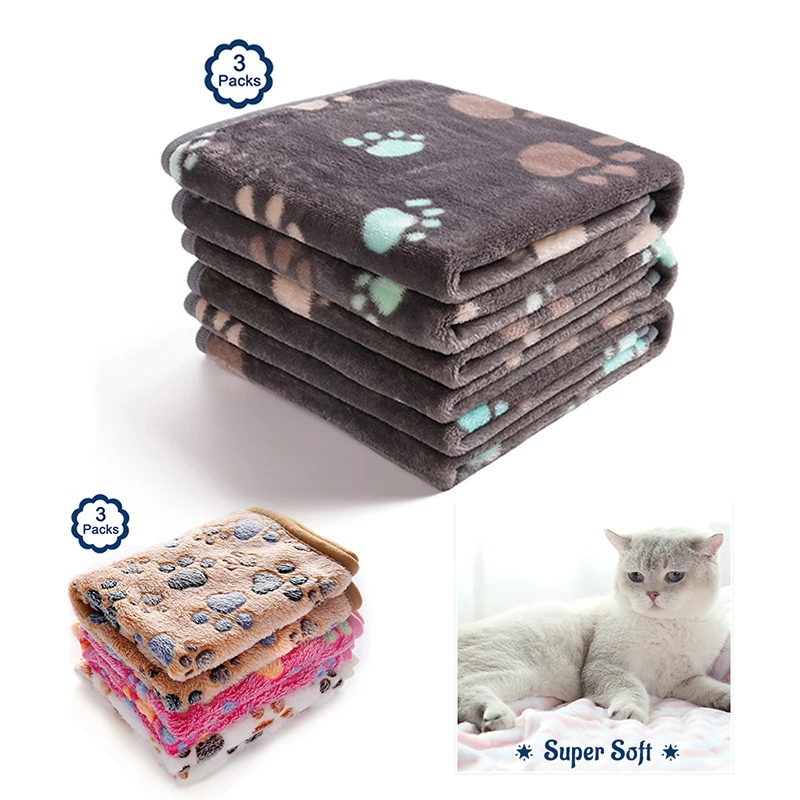 Мягкое фланелевое одеяло для собаки, подушка для кошки, зимнее теплое одеяло с принтом лап, покрывало для кошки, коврик для маленьких, средних и больших собак