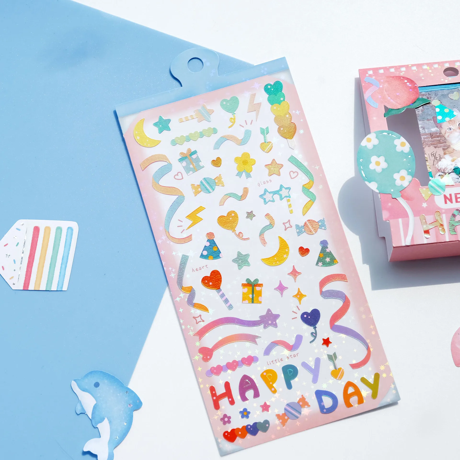 Kawaii красочные лазерные наклейки фрукты Купидон партия Животные Рука аккаунт материал декоративные наклейки