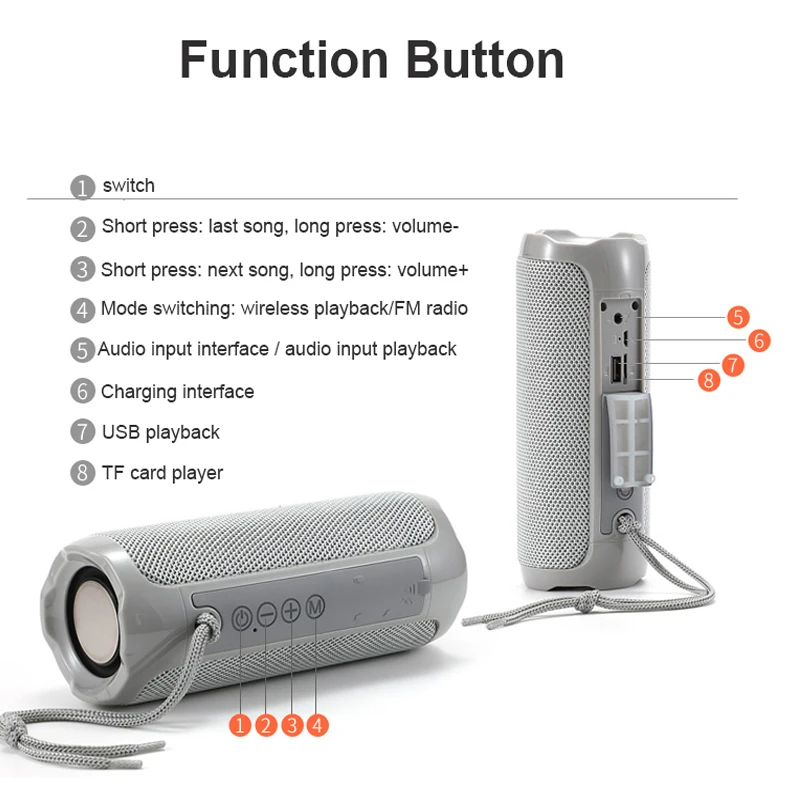Type4Column bluetooth speaker For Stereo Bass USB/TF/FM Radio PK flip5 TWS