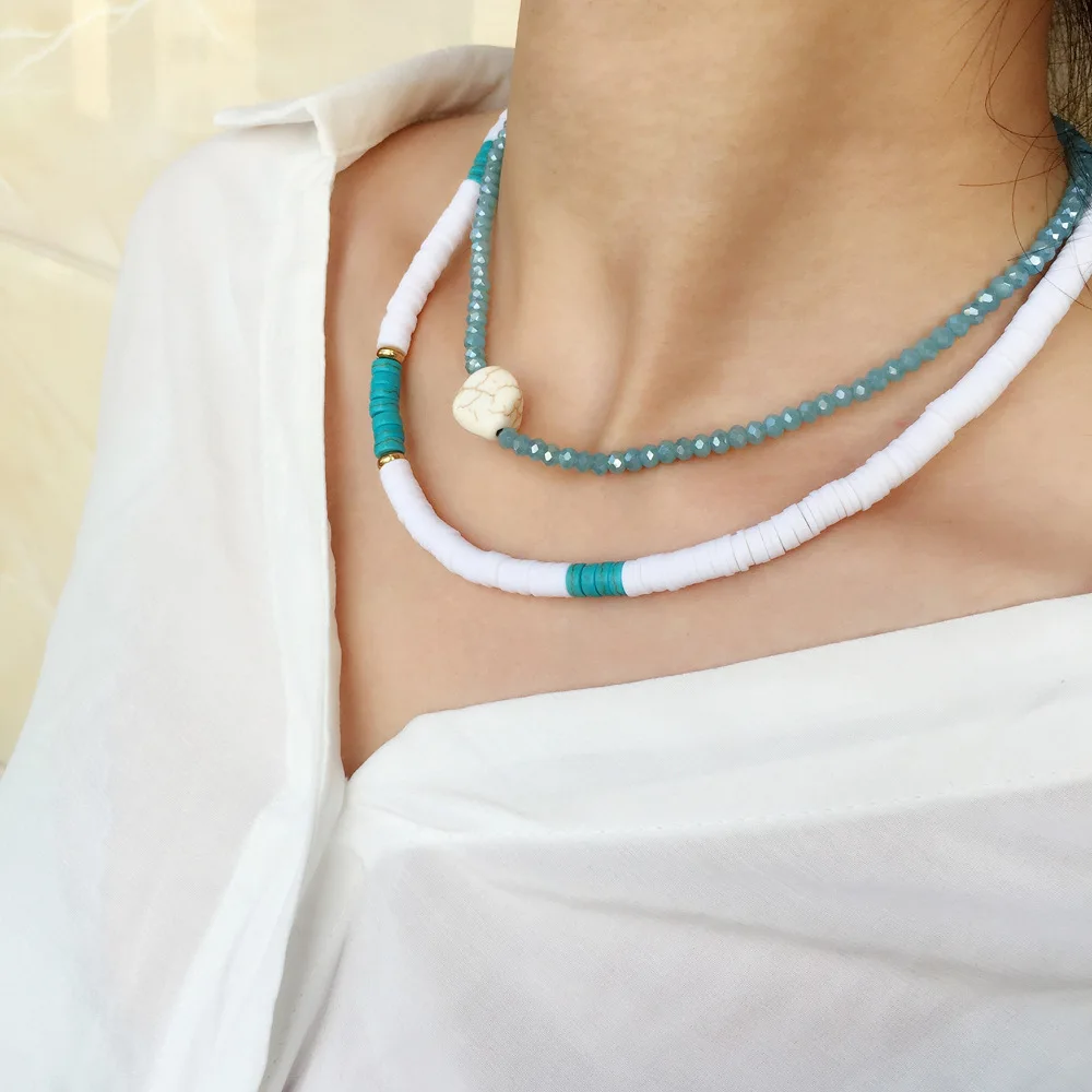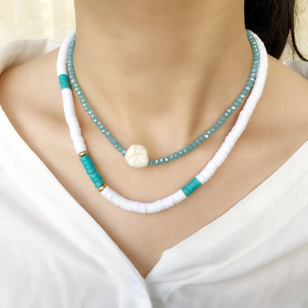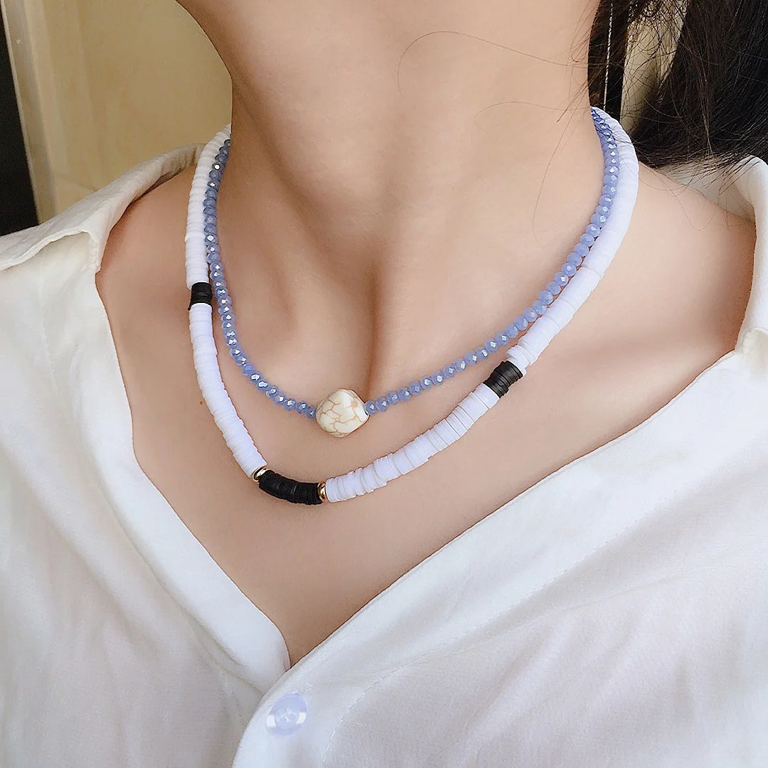 Ожерелье женское из полимерной глины, с имитацией жемчуга, цепочка с камнем