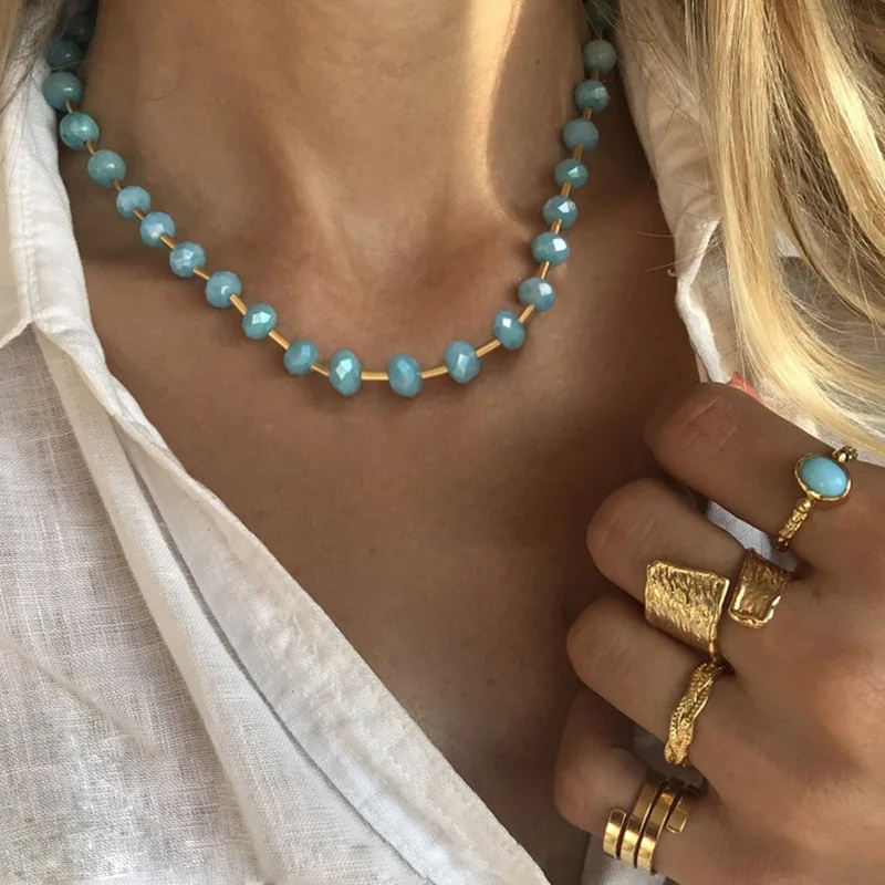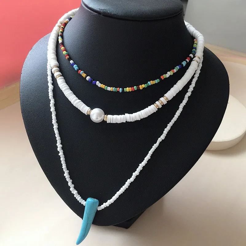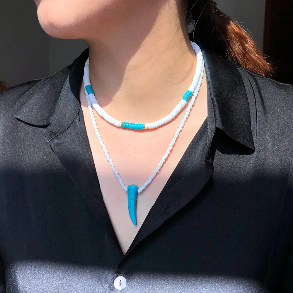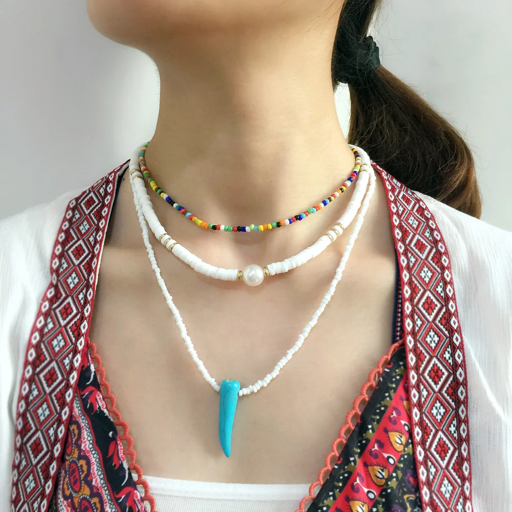 Ожерелье женское из полимерной глины, с имитацией жемчуга, цепочка с камнем