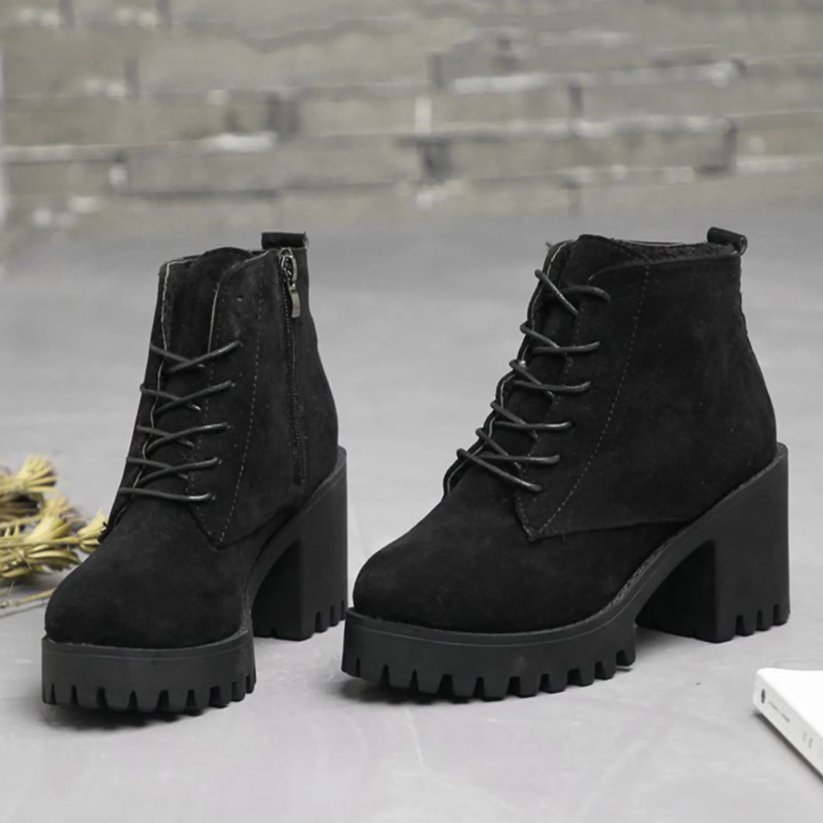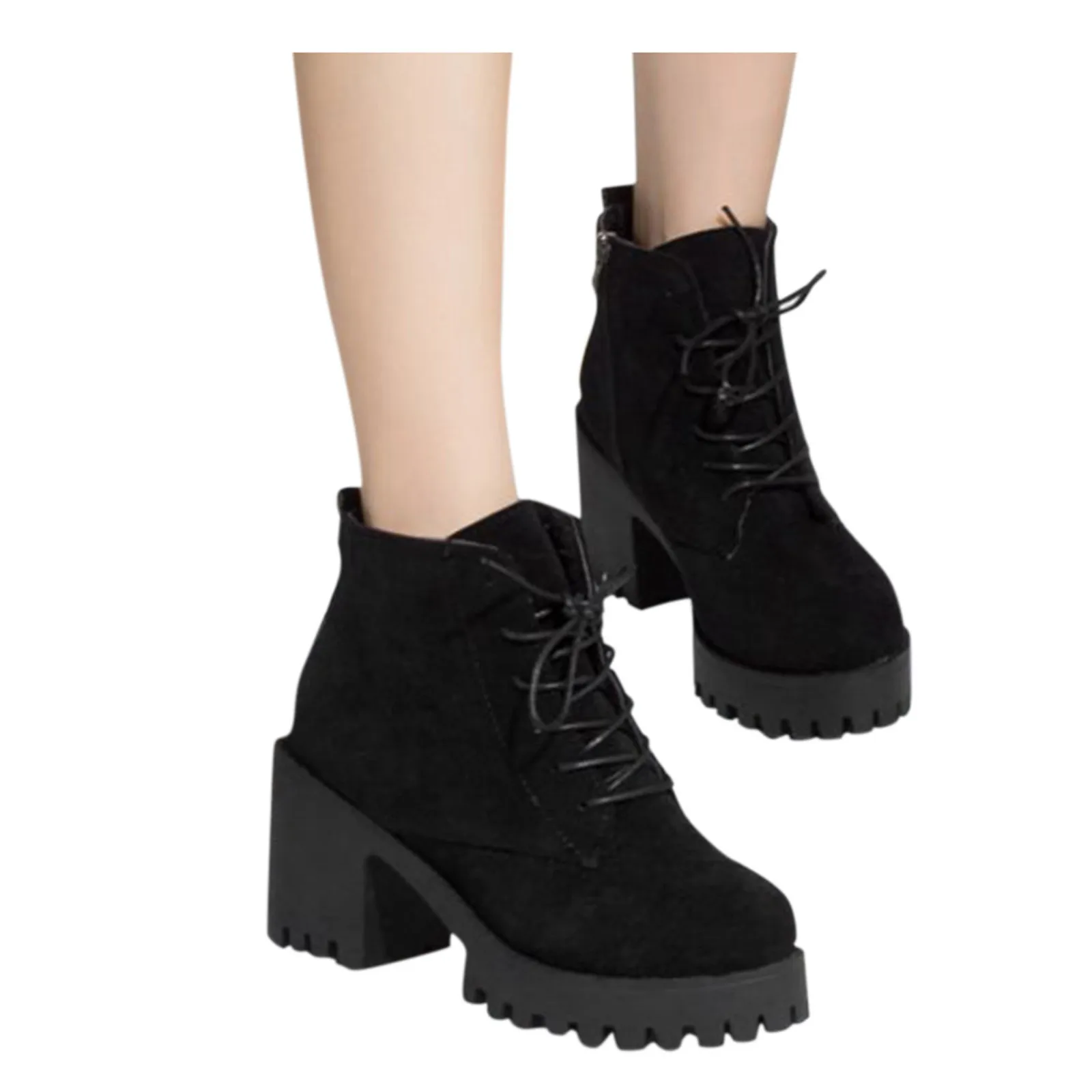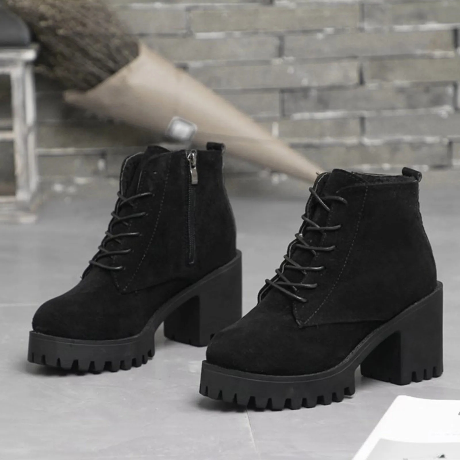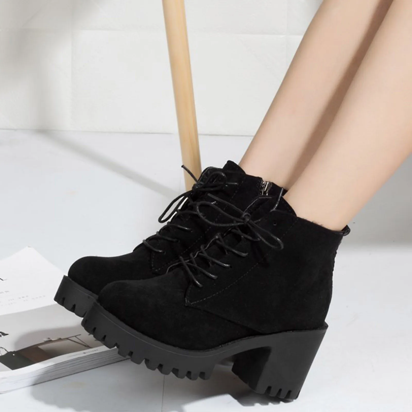 Женские ботинки; Коллекция 2021 года; Зимние ботинки для женщин; Модная обувь на квадратном каблуке; Рабочие ботинки из флока на шнуровке; Цвет армейский зеленый; Распродажа
