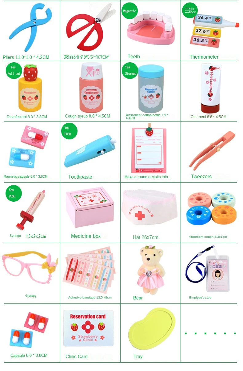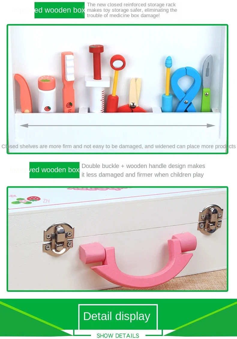 Название продукта: деревянный набор игрушек доктораВес; 1,5 кгМатериал: деревоРазмеры: как показано на рисункеПодходящий возраст: 3 года и старшеПримечание: пожалуйста, обратитесь к реальному объекту