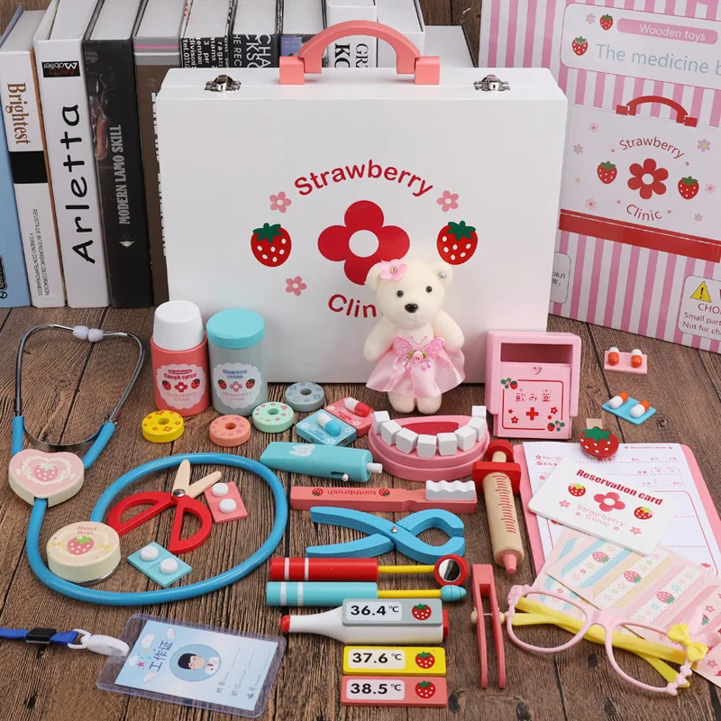 Набор деревянных игрушек-врачей для девочек и мальчиков, шприц для стетоскопа с имитацией дома, детский ящик для инструментов, деревянные игрушки для захвата