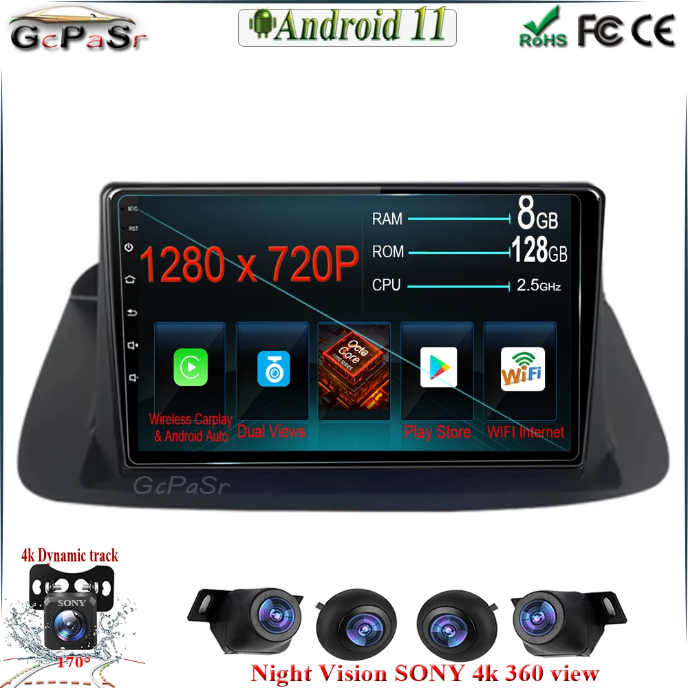 Автомобильная стерео-система на Android 11 с двумя объективами для ...