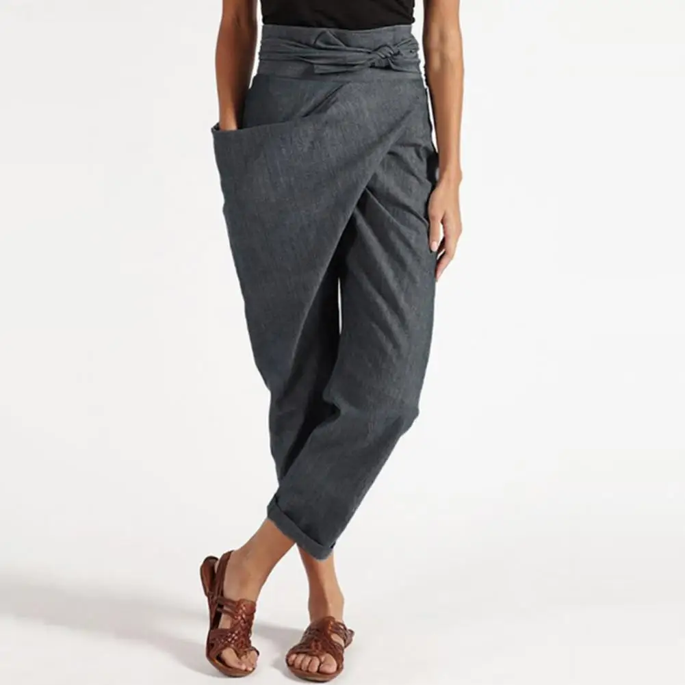 Дропшиппинг 80%! Женские брюки с асимметричными карманами, уличная одежда, однотонные укороченные брюки с высокой талией для свиданий