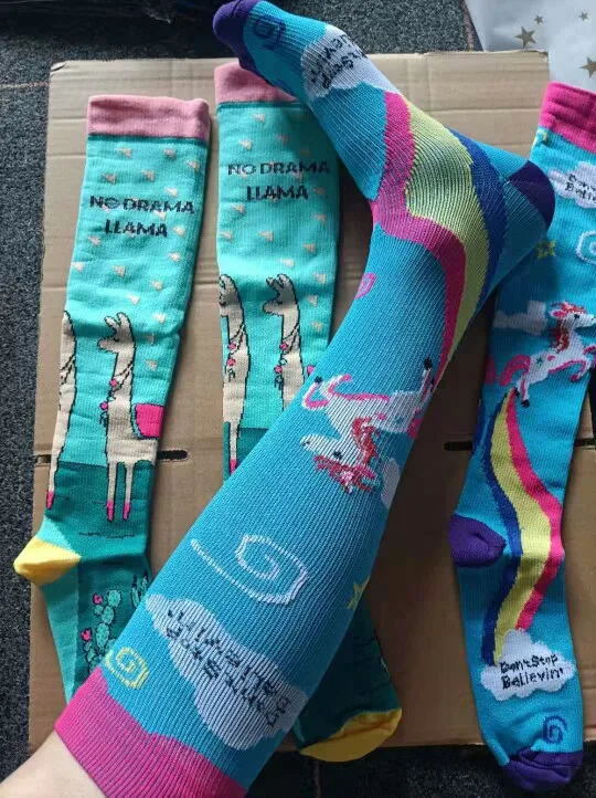 Носки компрессионные для мужчин и женщин, смешные носки до колена для марафона, бега, при диабете, варикозное расширение вен, чулки