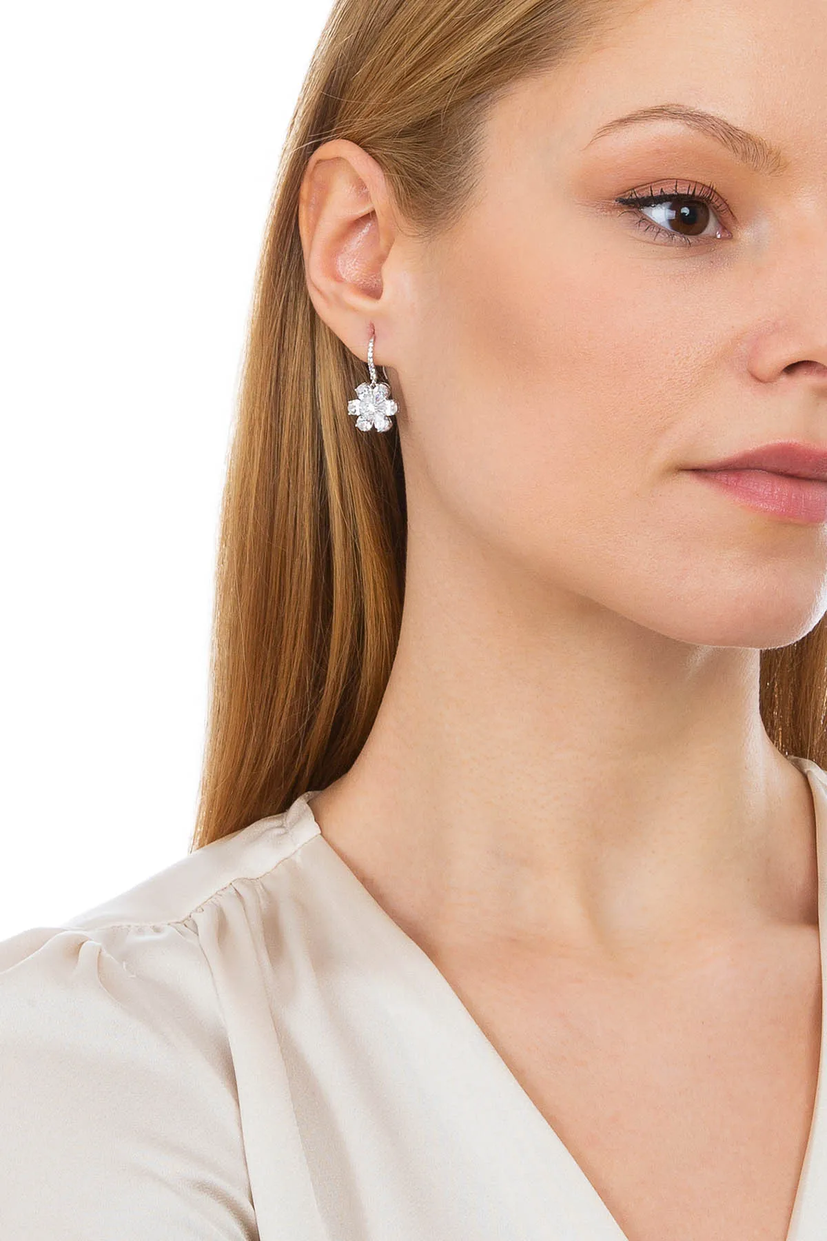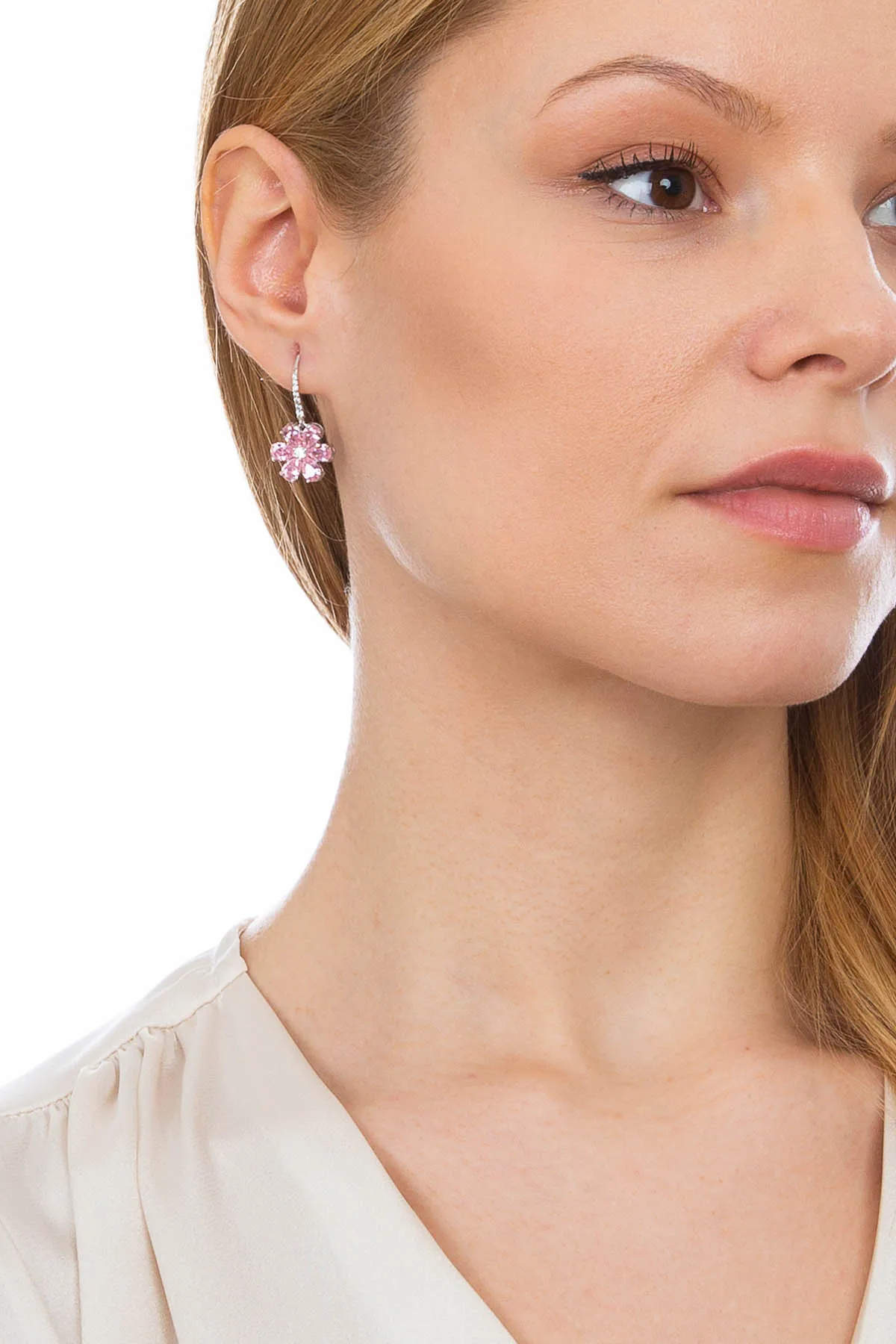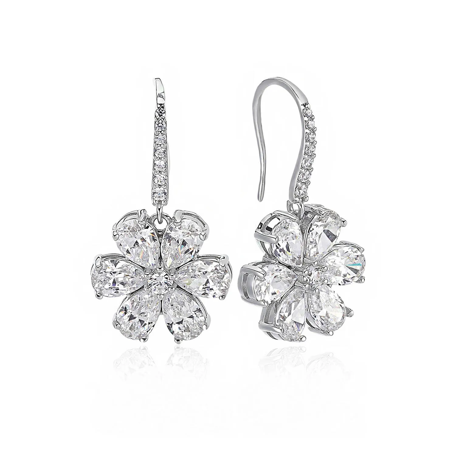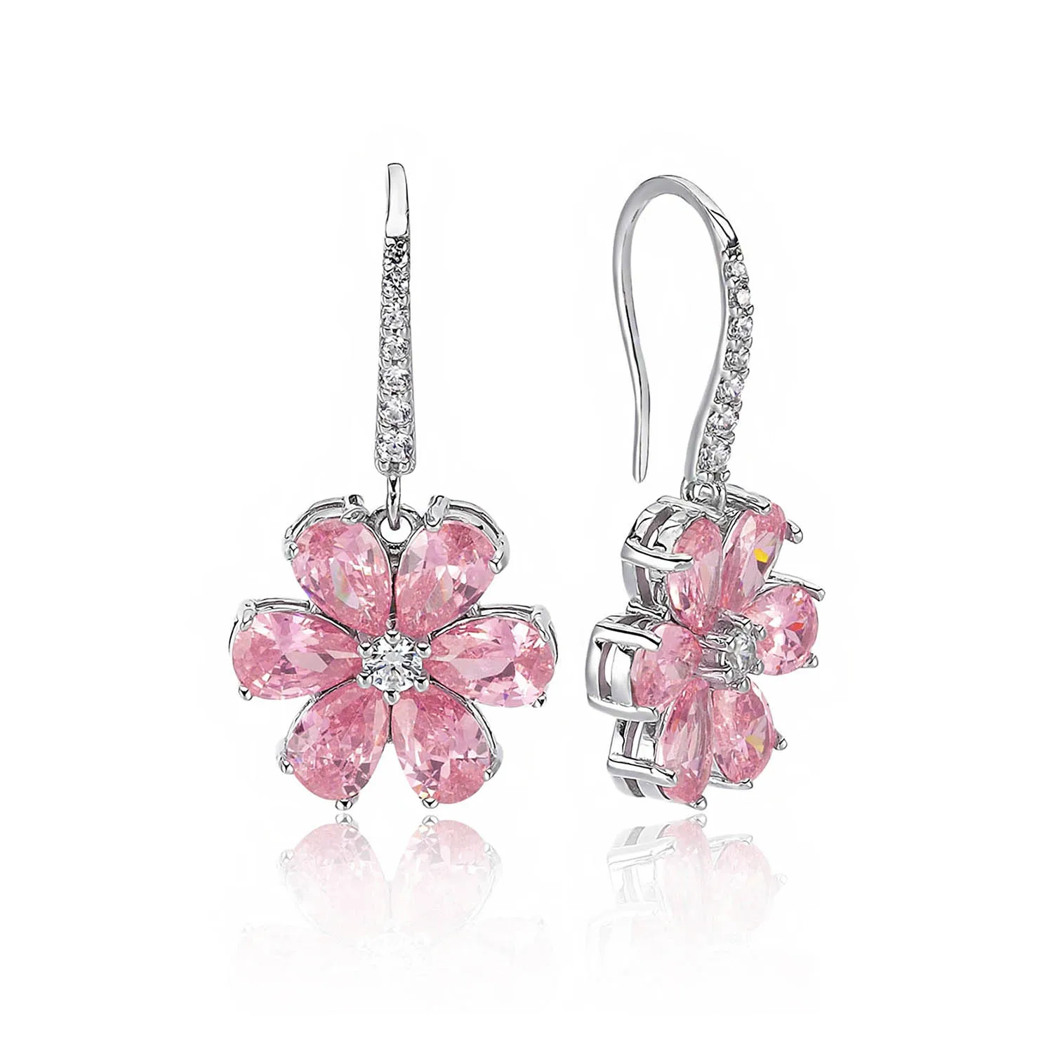 Серьги-подвески с цветком магнолии, цирконий 4 карата, розовая груша, родиевое покрытие, серебро 925 пробы, ювелирные изделия