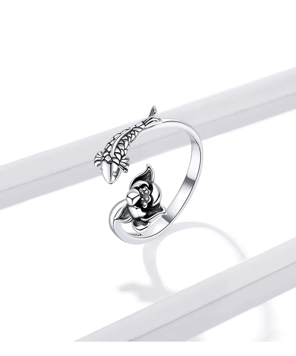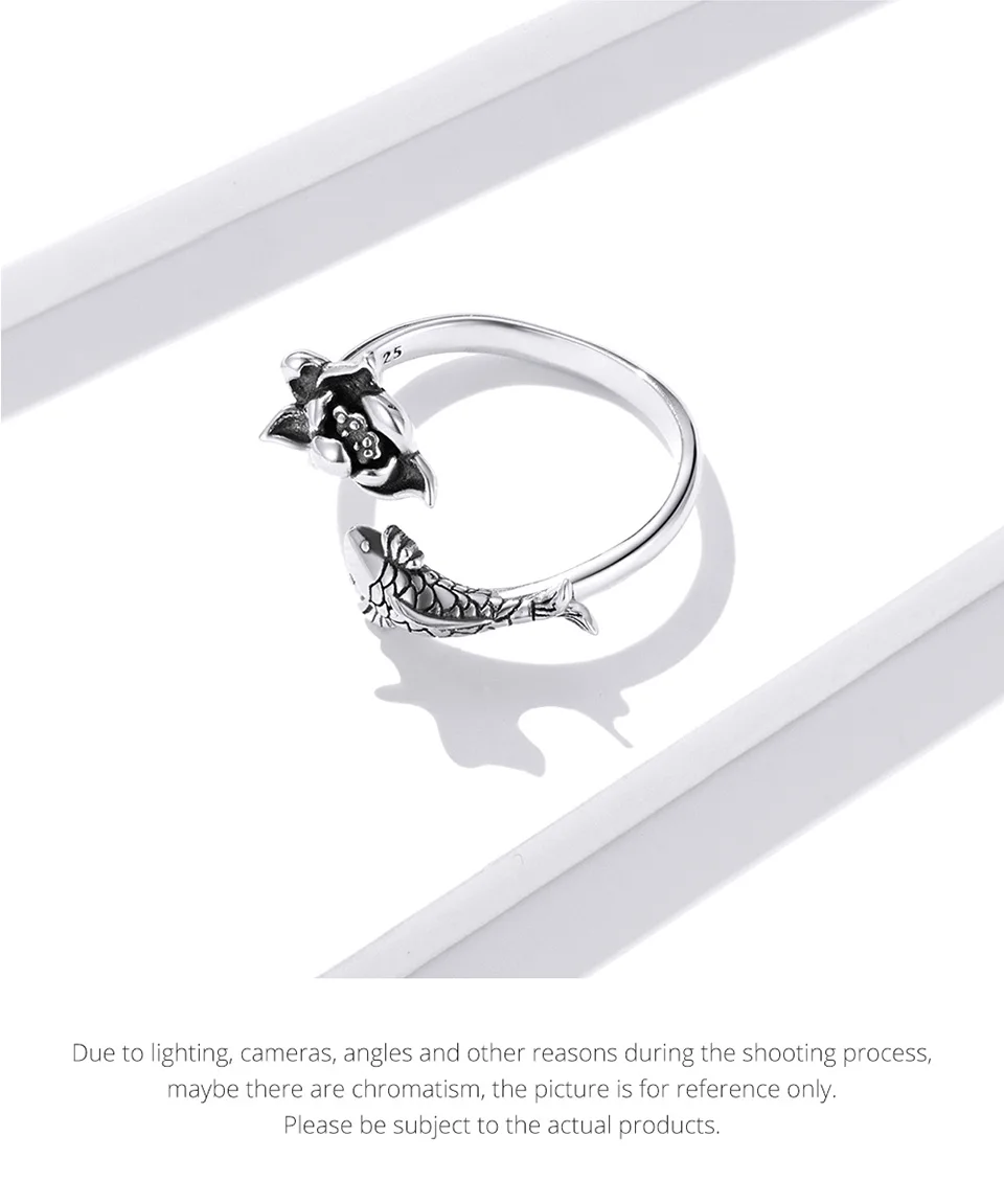 Bamoer нежный лотос Koi счастливое кольцо для женщин из натуральной 925 стерлингового серебра рыба кольцо 2021 новые украшения на свадьбу, годовщину подарок